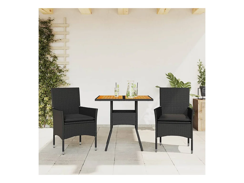 Motta Sant'Anastasia Ensemble à manger de jardin et coussins 3 pcs noir rotin acacia