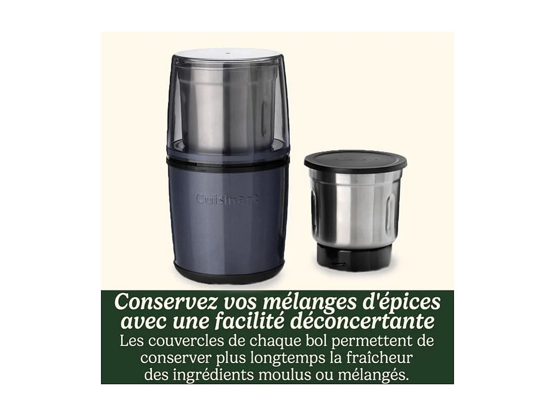 Moulin a épices - CUISINART - Fonctionne par impulsion - 2 bols avec couvercle - Bleu nuit