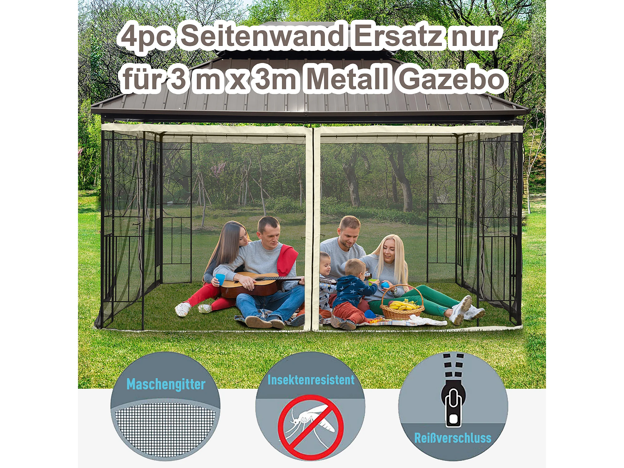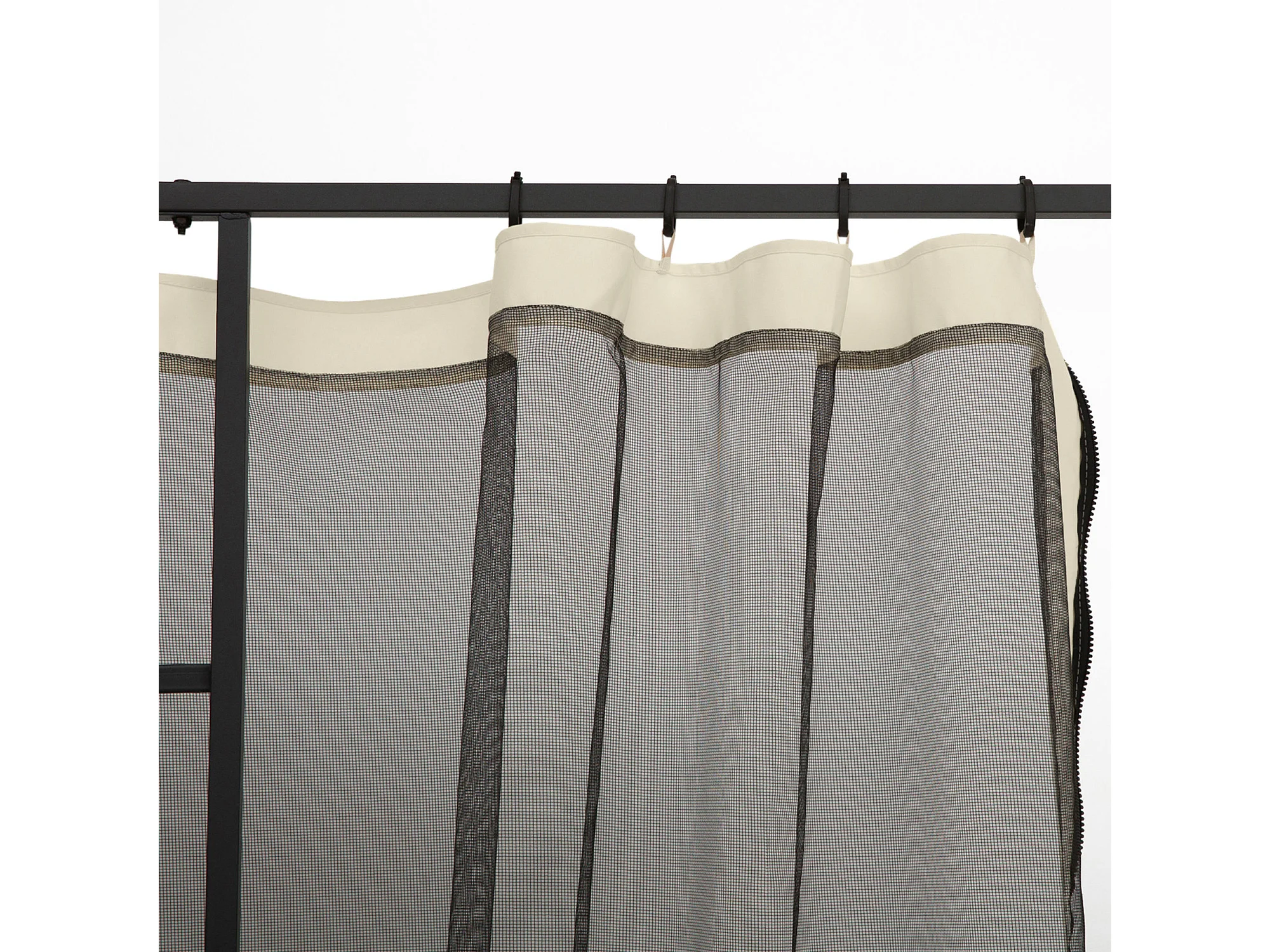 Moustiquaire pour pavillon 3x3m, 4 panneaux avec fermeture éclair, nylon mesh durable noir (302x207cm)