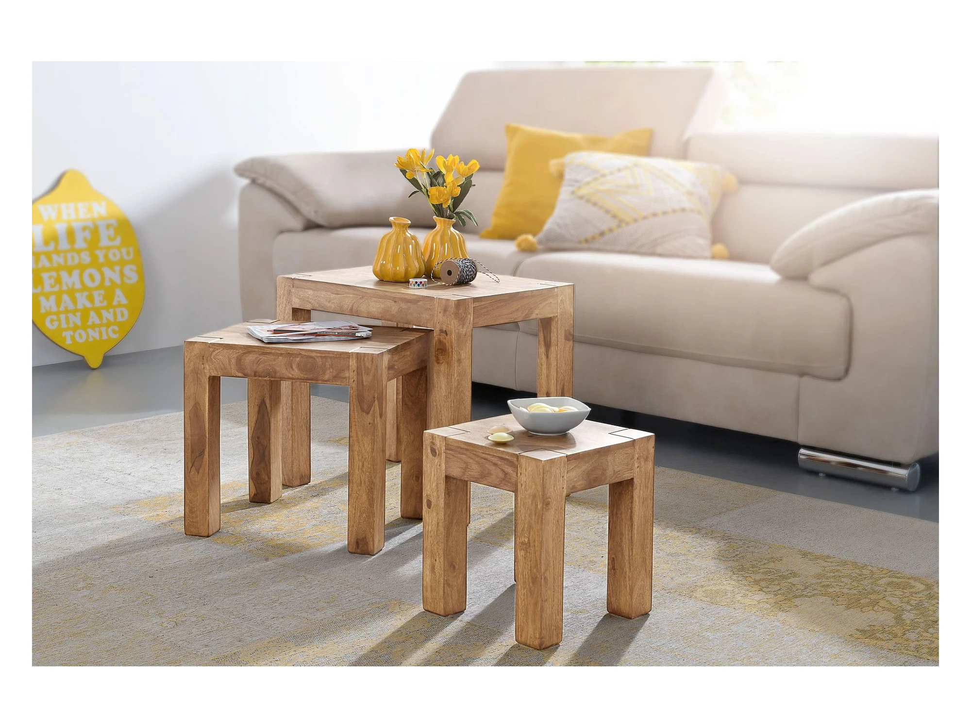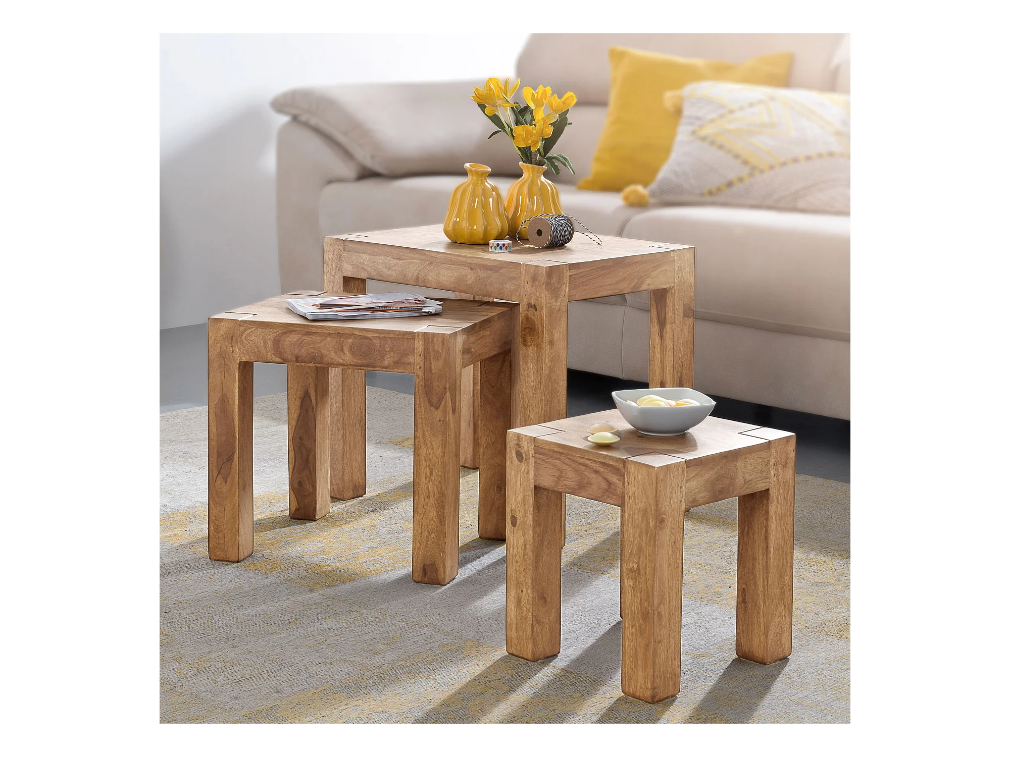 MUMBAI bijzettafel in massief acaciahout 35 x 35 cm design salontafel in landelijke stijl donkerbruin