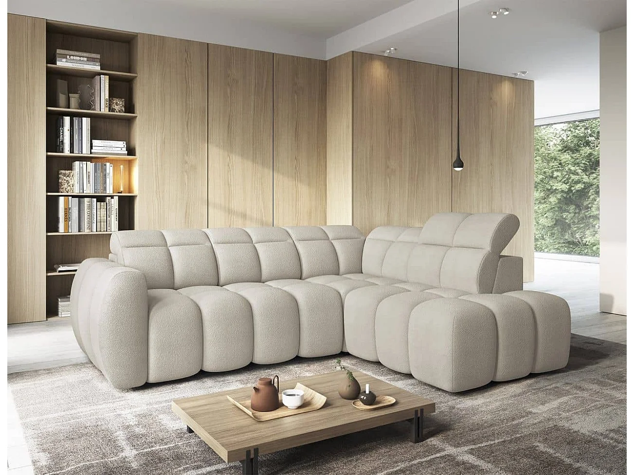 MYHOMELANDO Falconn canapé d’angle – forme en L avec avance électrique de l’assise, coffre de rangement et appuie-têtes réglables