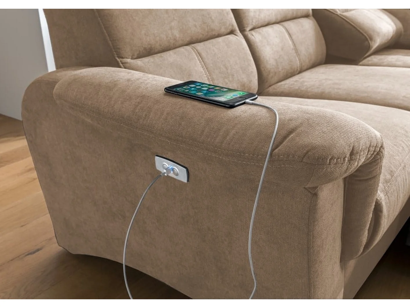 MYHOMELANDO Paris canapé d’angle – fonction couchage, fonction relax électrique, port USB