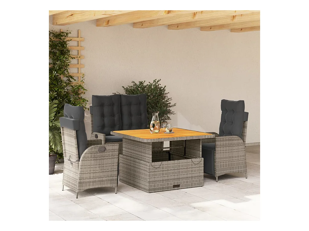 Wise Ensemble à manger de jardin et coussins 2 pcs gris rotin
