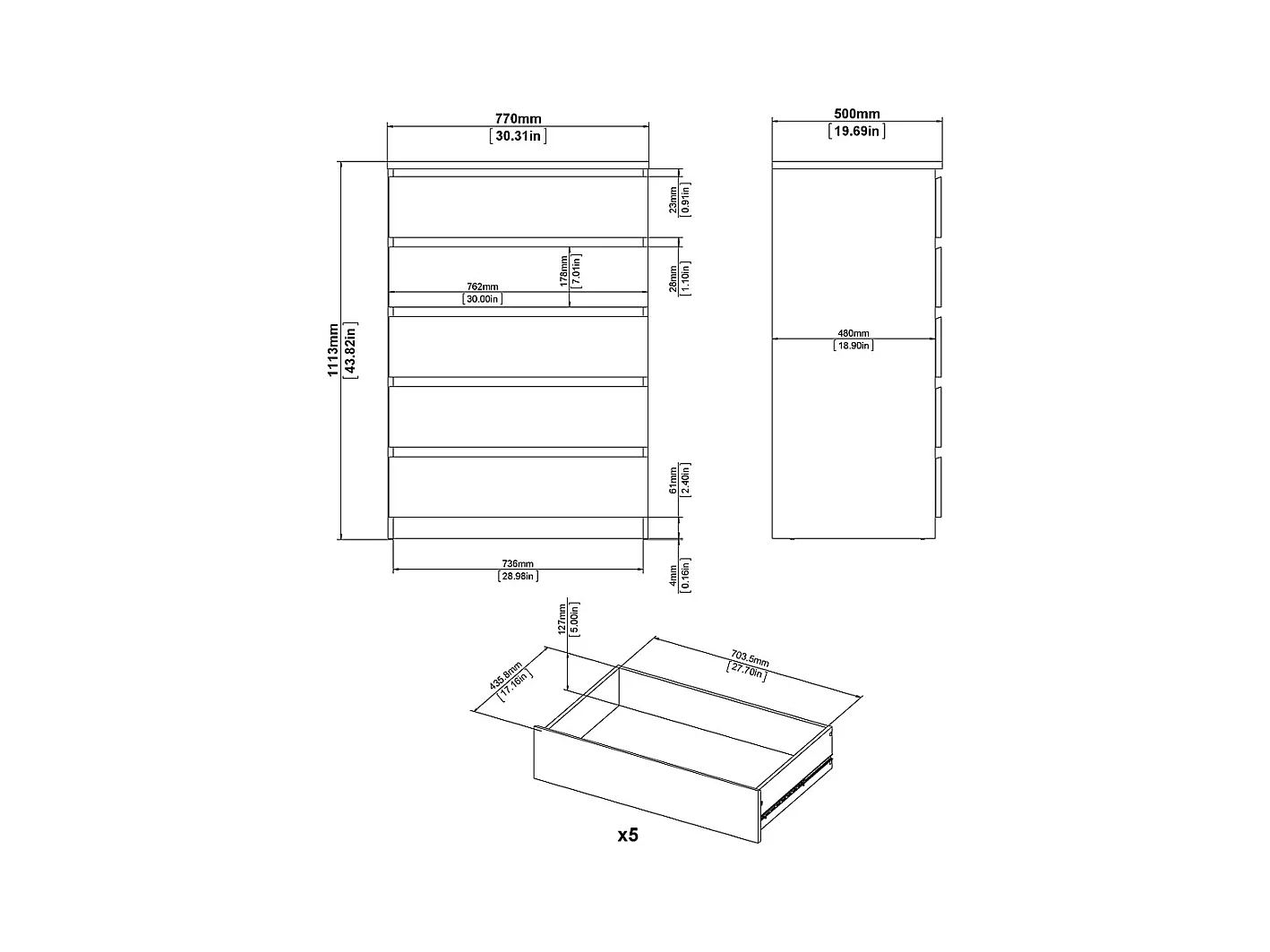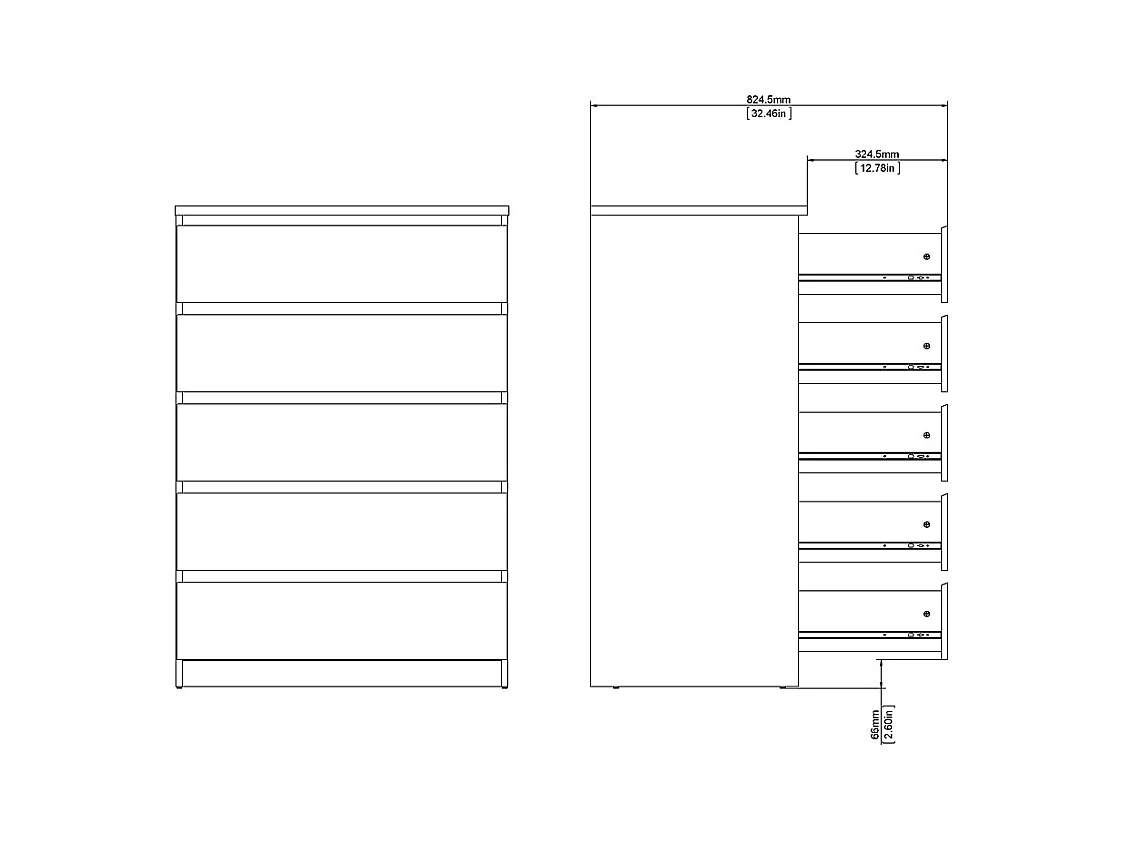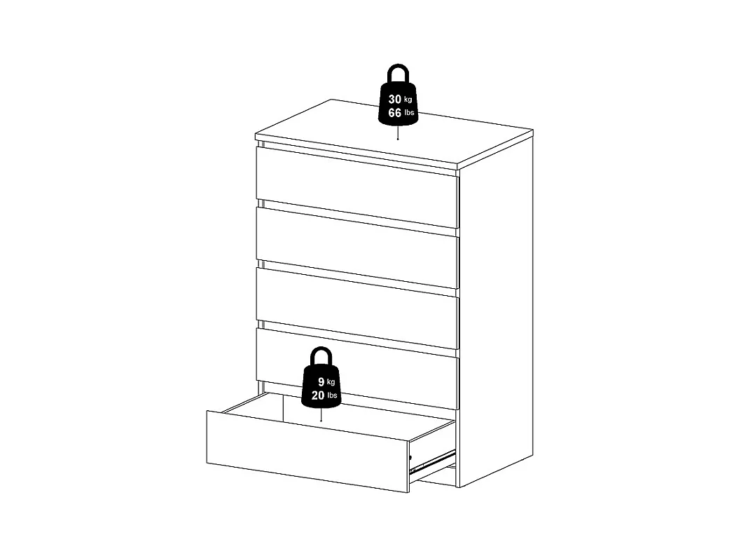 Nada Commode large avec 5 tiroirs, mat noir.