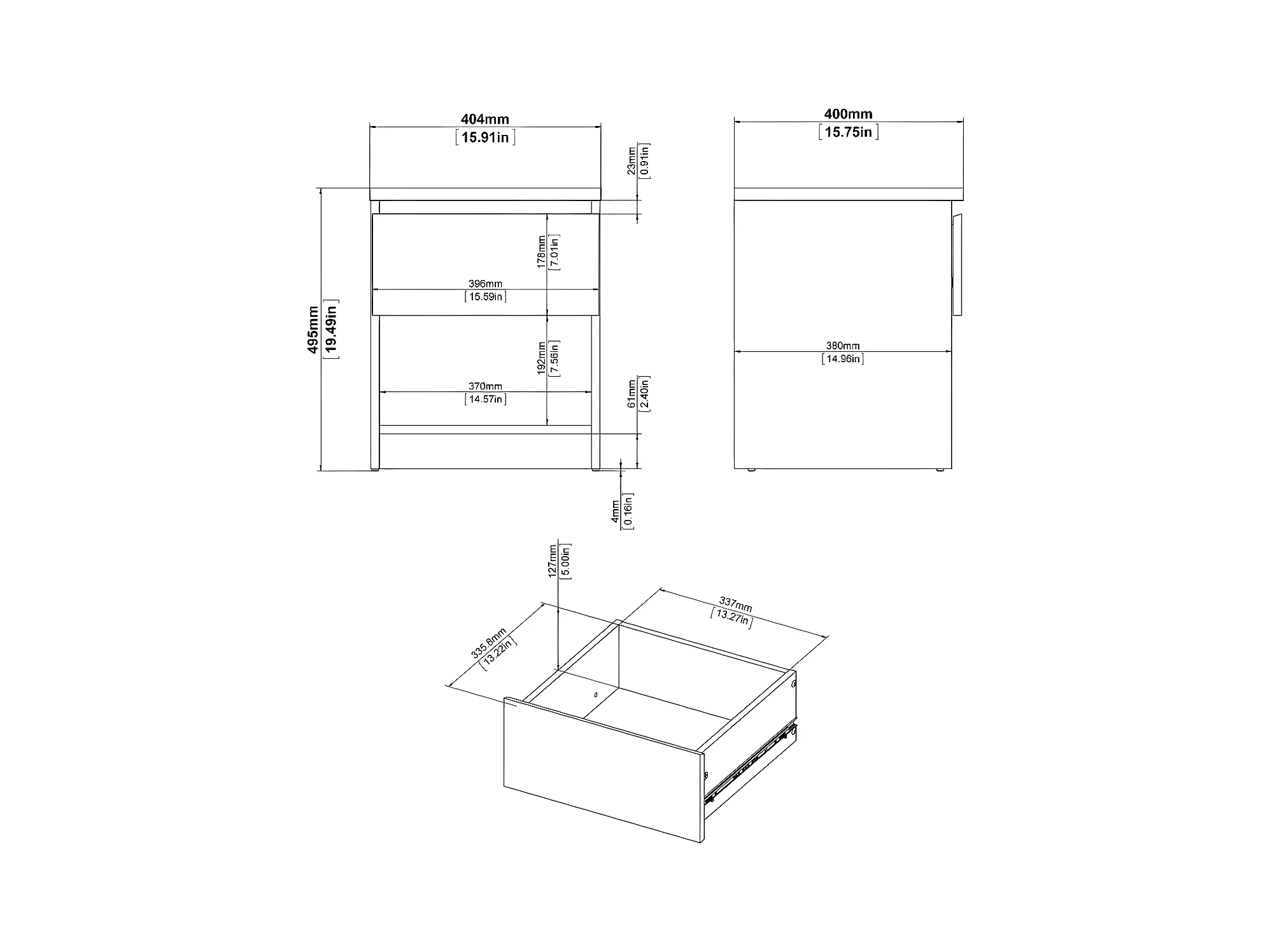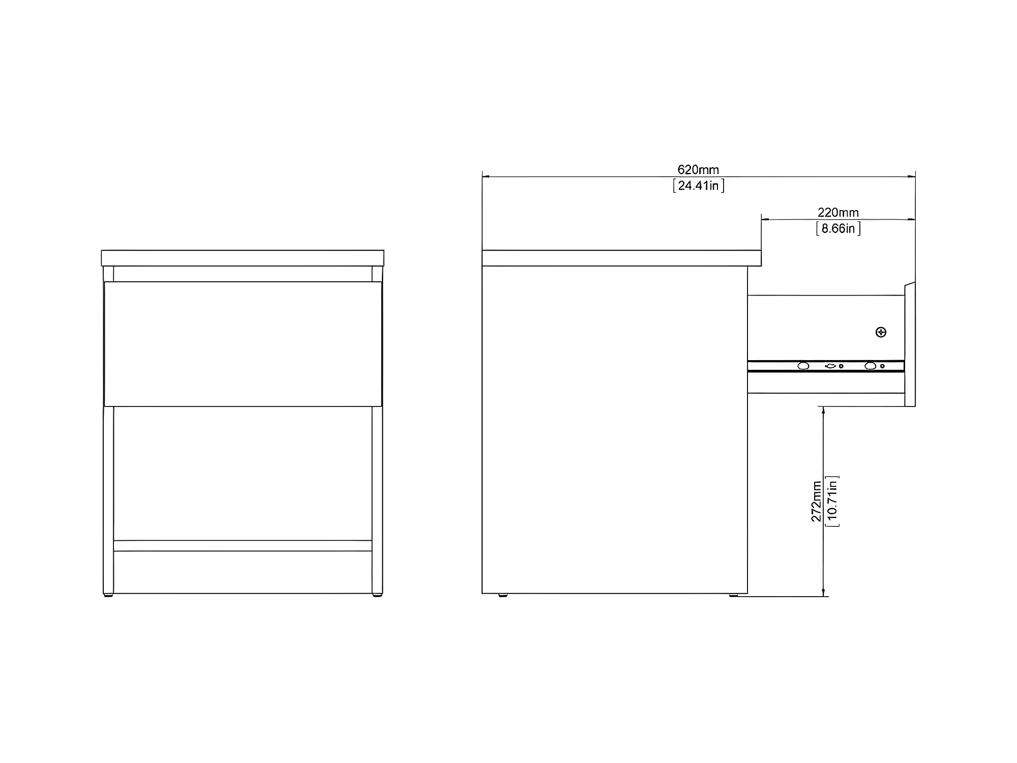 Nada Table de chevet à 1 tiroir et 1 espace de rangement ouvert, noir mat.