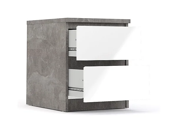 Nada Table de chevet à 2 tiroirs, aspect béton, blanc brillant.
