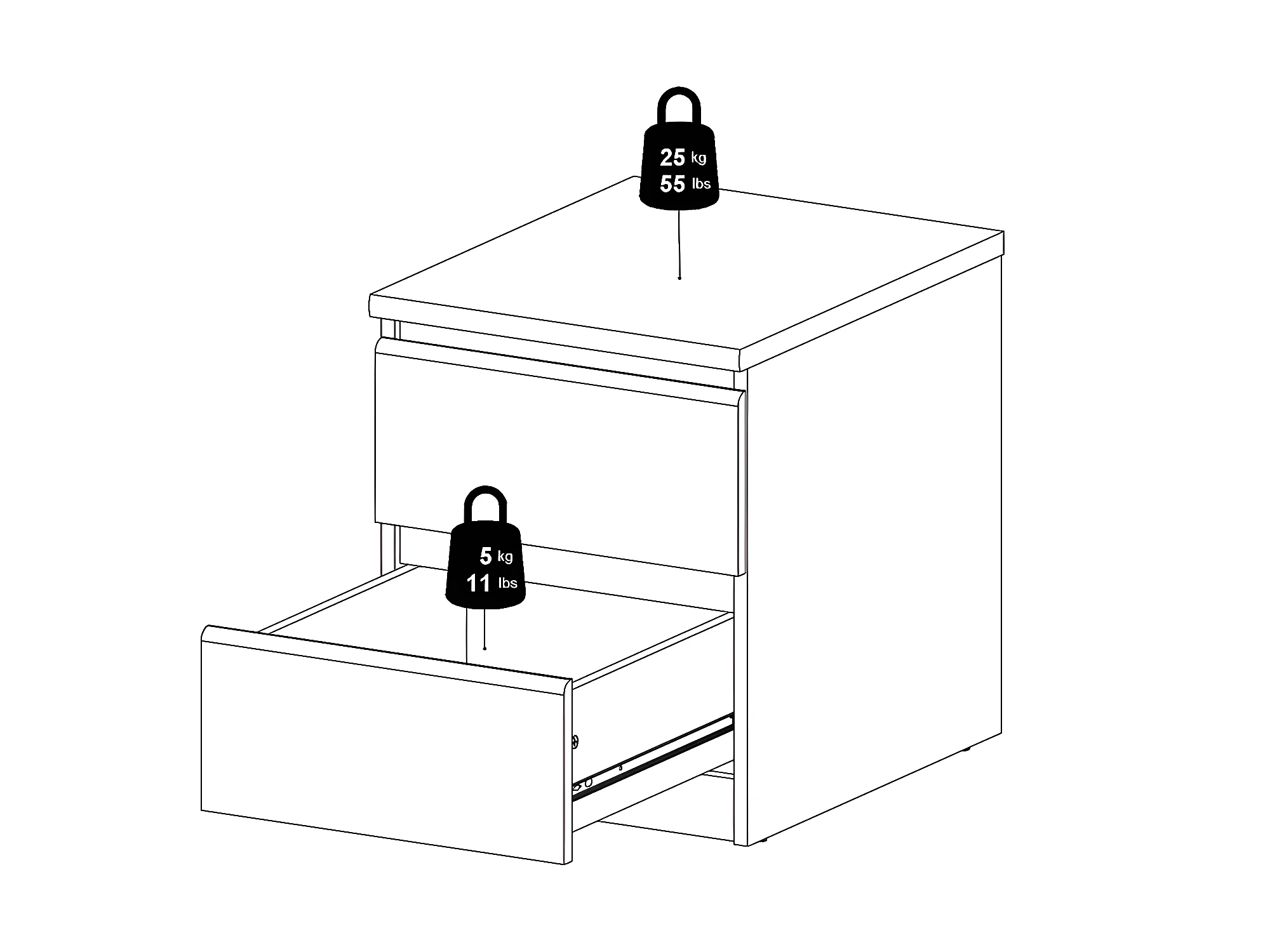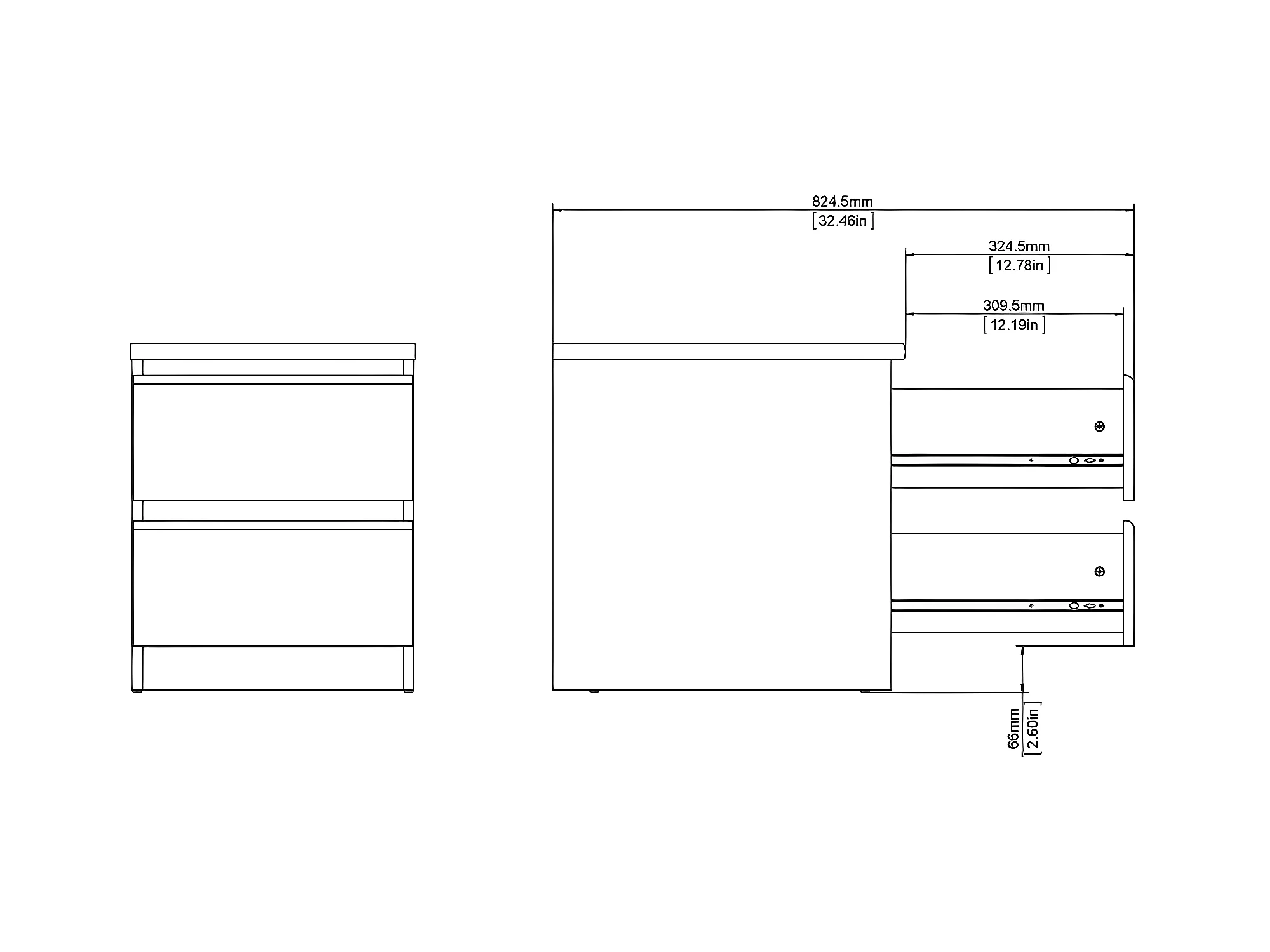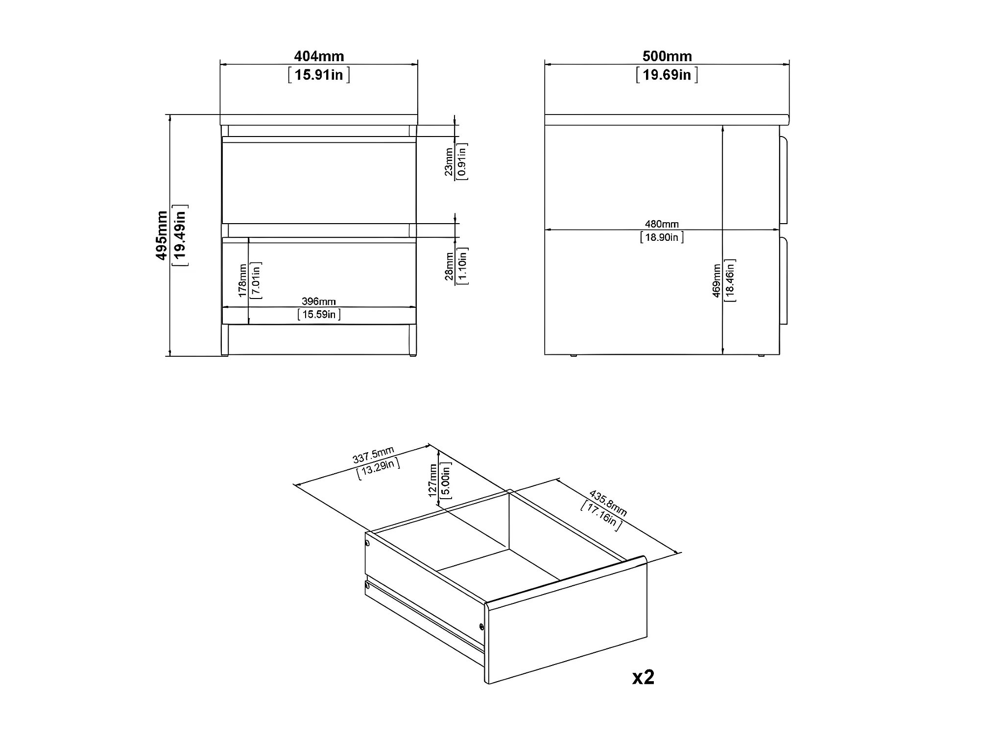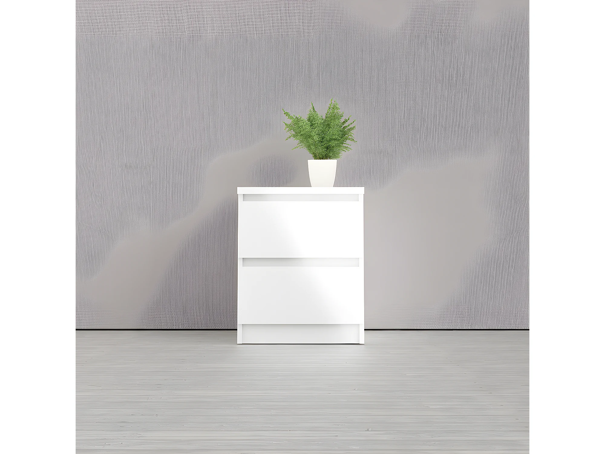 Nada Table de chevet à 2 tiroirs, blanc brillant.
