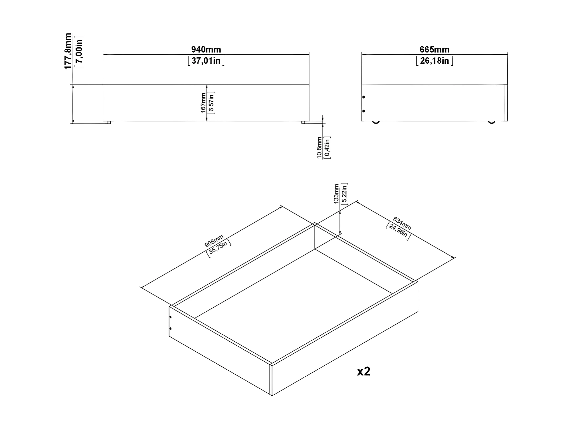 Nada Tiroir de lit L94 cm, 2 pièces, imitation chêne Hickory.