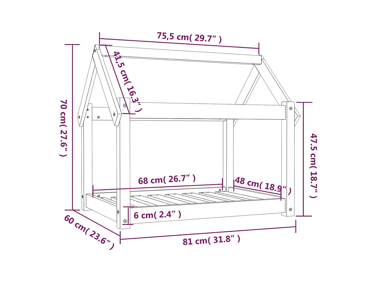 Lit pour chien Gris 81x60x70 cm Bois de pin solide
