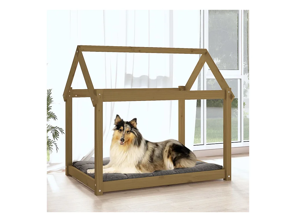 Lit pour chien Marron miel 101x70x90 cm Bois de pin solide