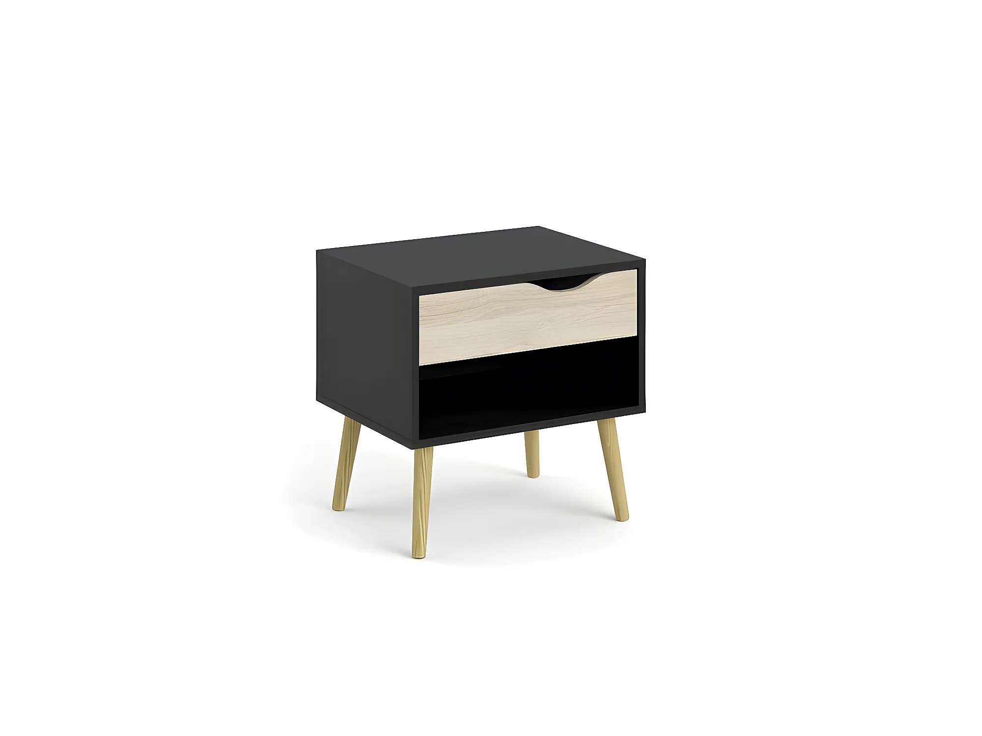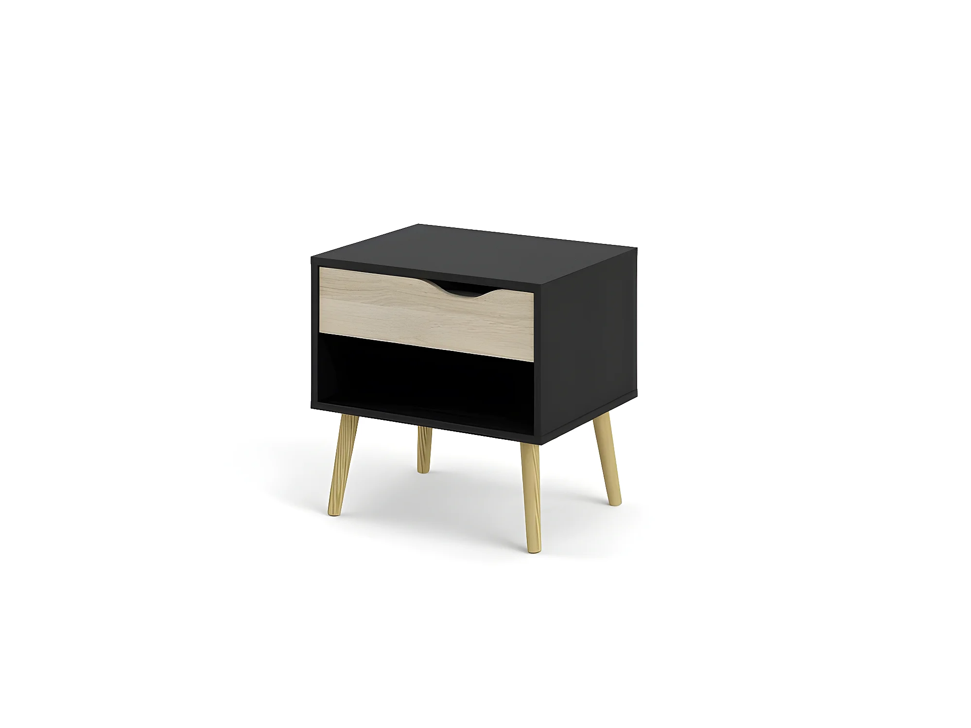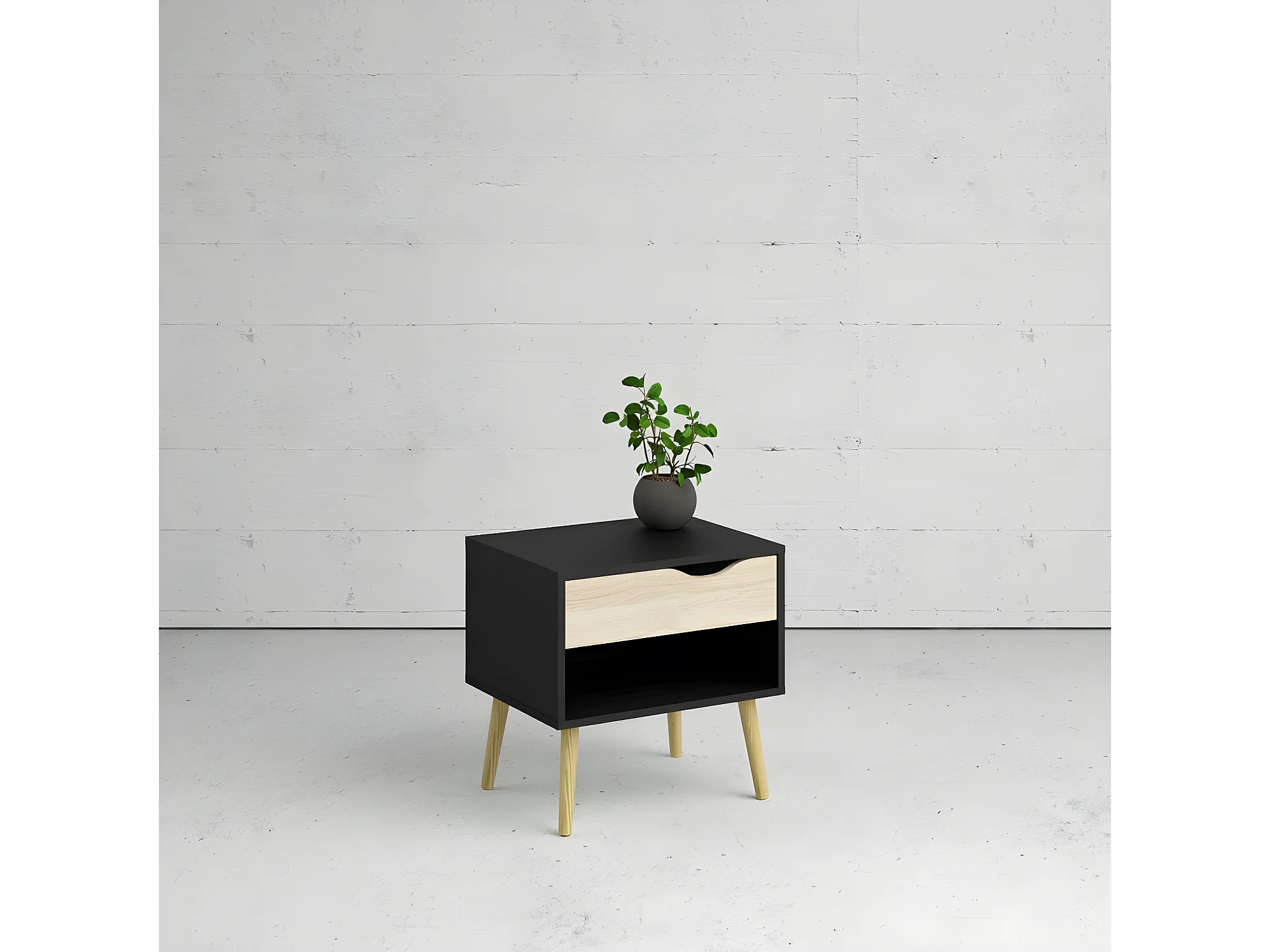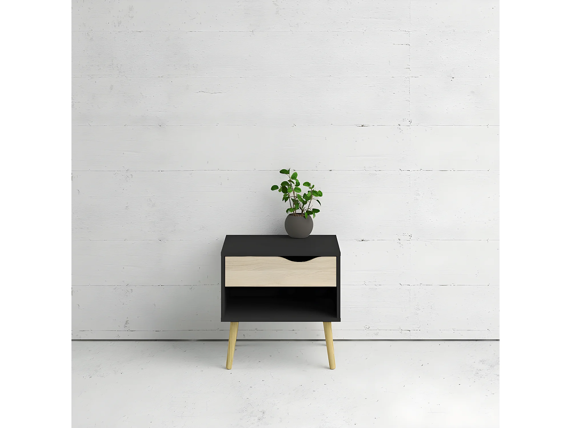 Napoli Table de chevet à 1 tiroir et 1 espace ouvert, noir mat/chêne.