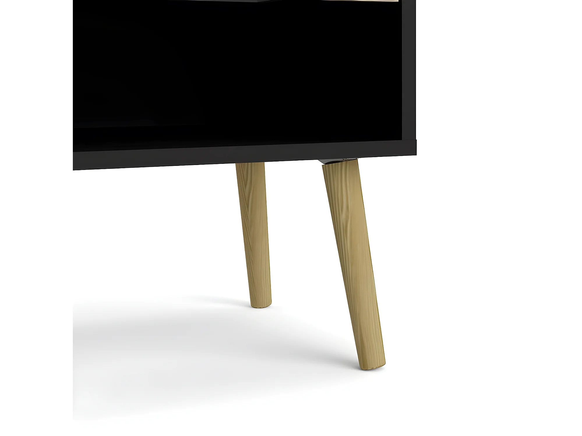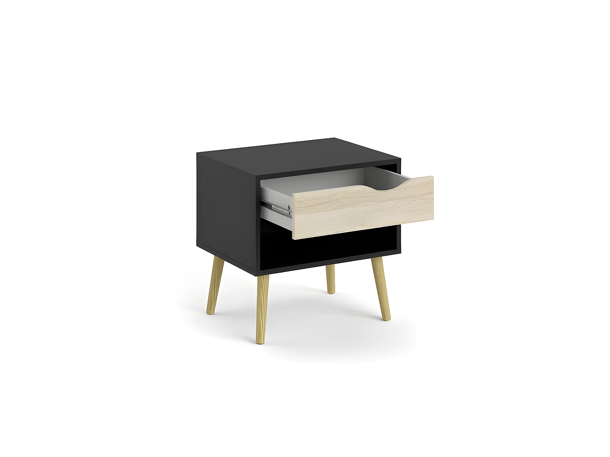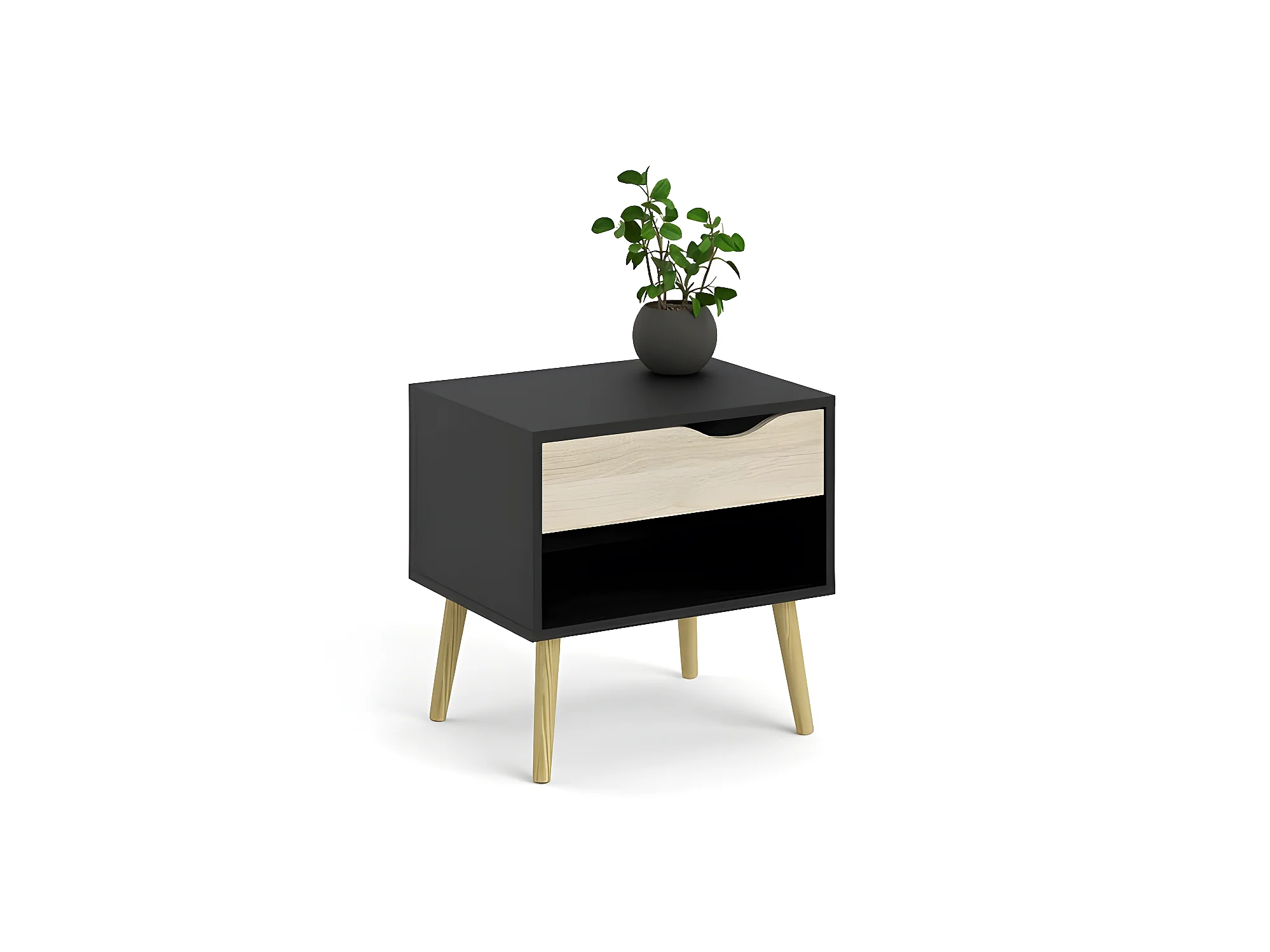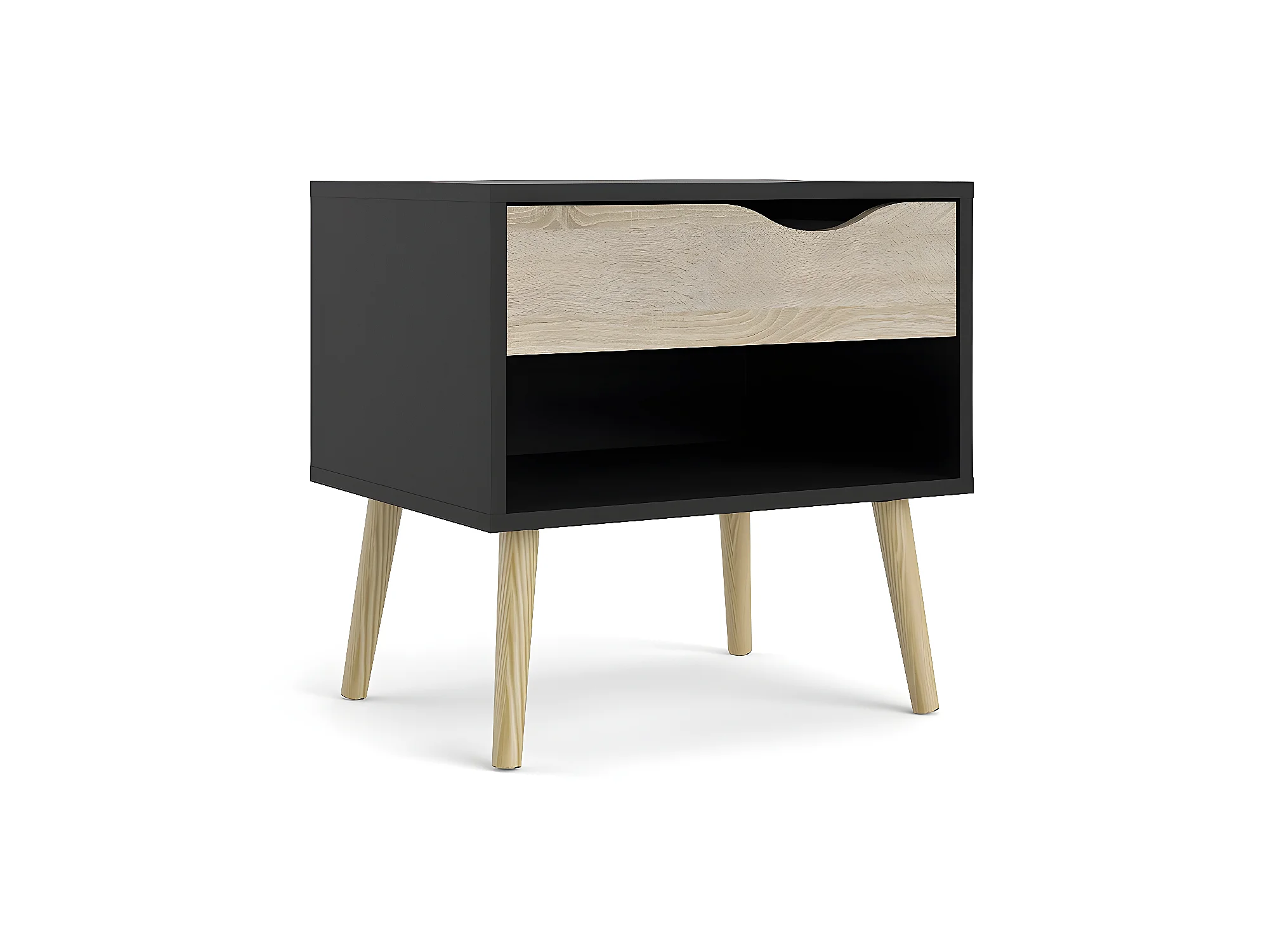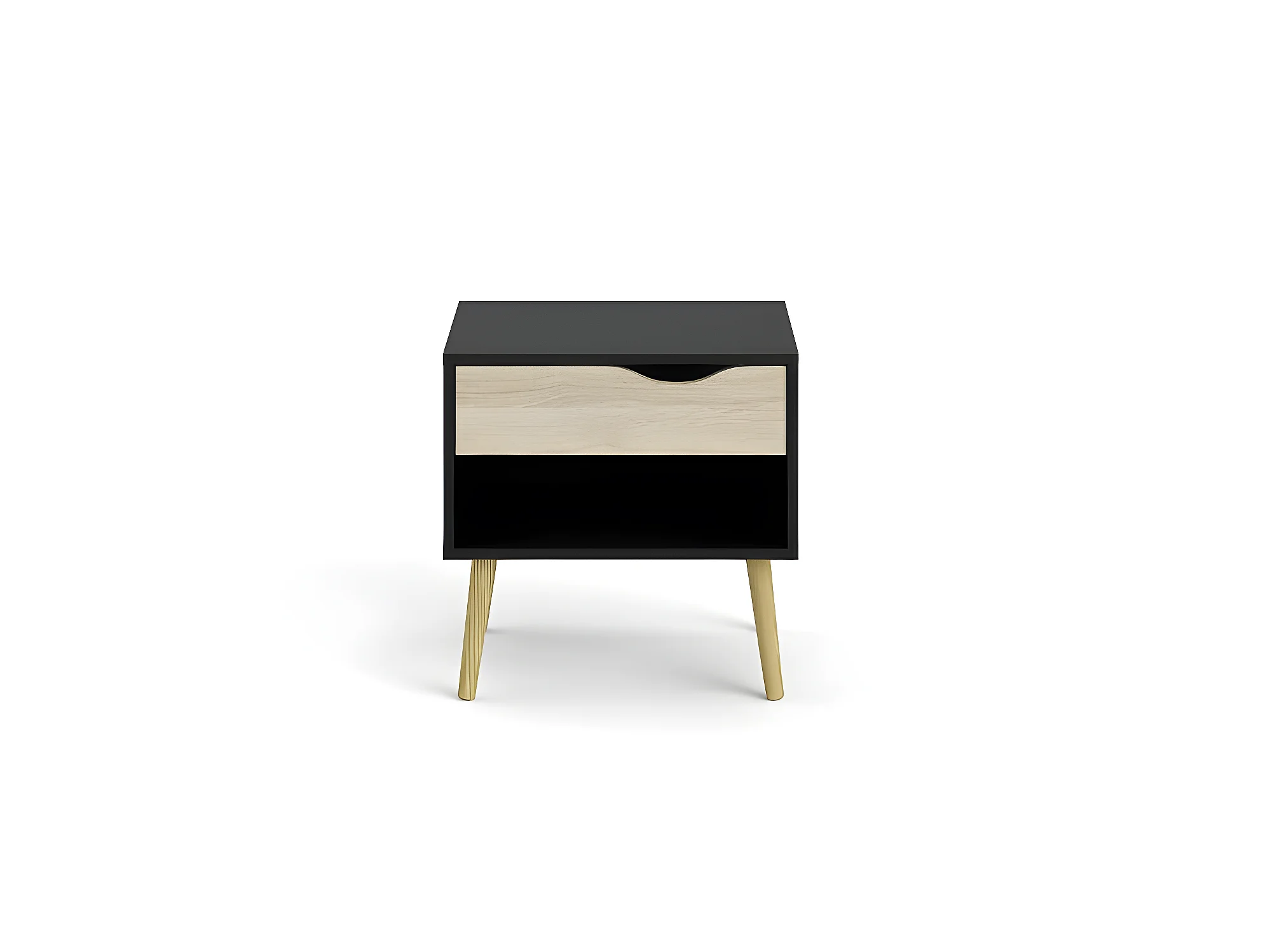 Napoli Table de chevet à 1 tiroir et 1 espace ouvert, noir mat/chêne.