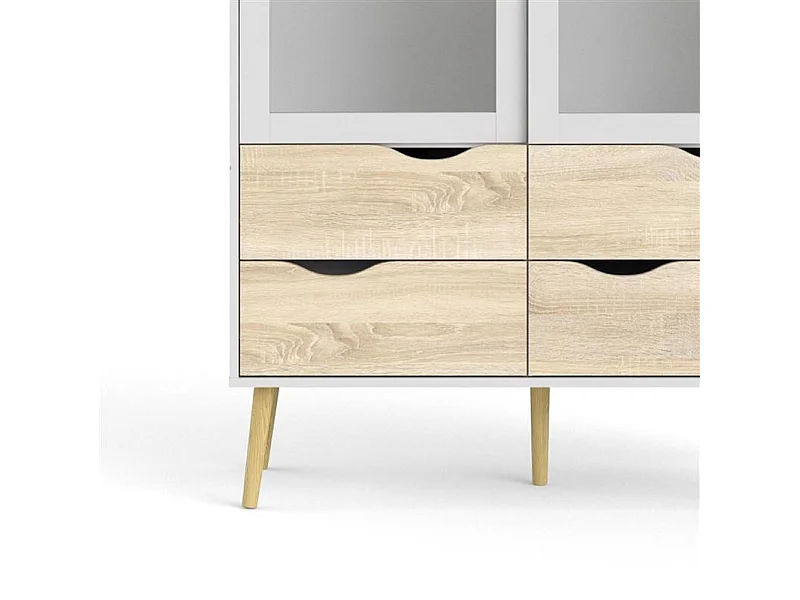 Napoli Vitrine avec 2 portes et 4 tiroirs blanc/chêne décor/chêne massif.