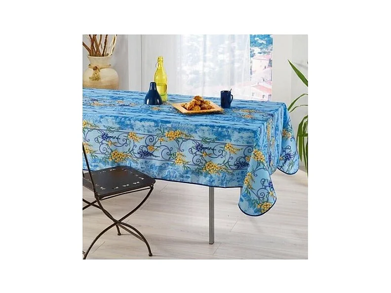 Nappe Provençale Rectangle Anti-Tâches, Bouquet de Blé Bleu