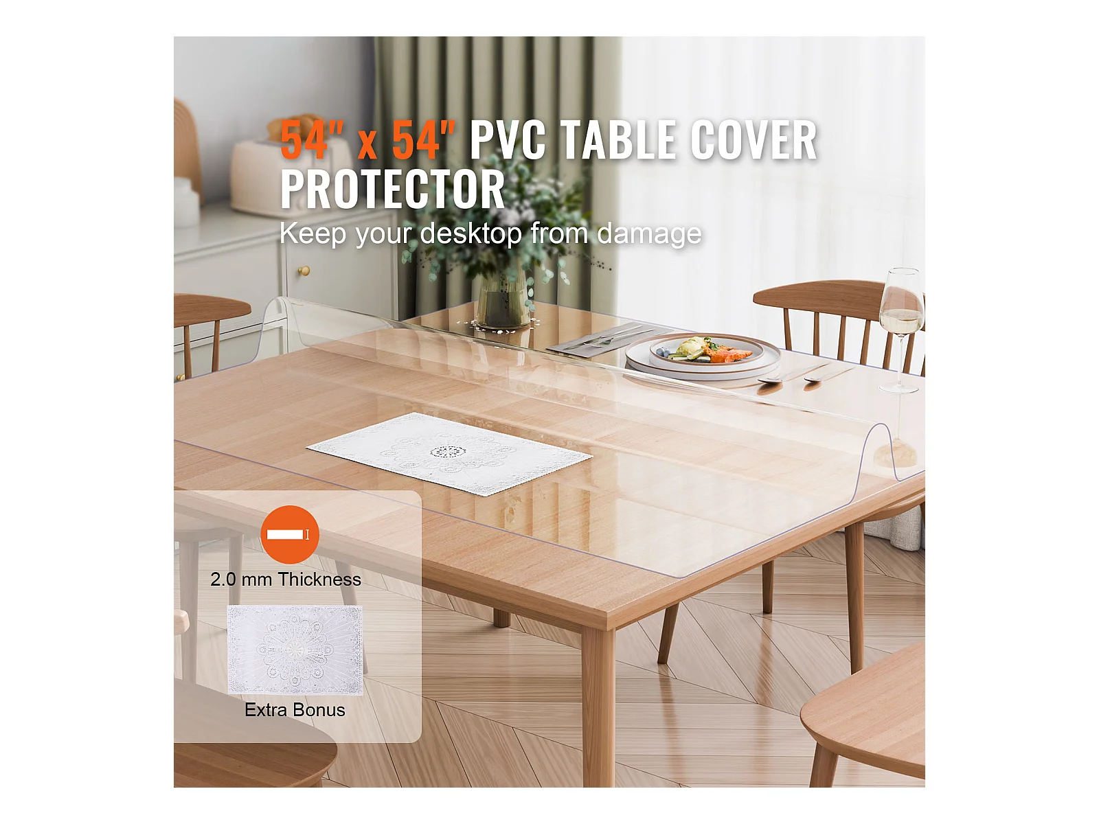 Nappe SucceBuy Protecteur de Table en PVC 137 X 137 CM, Protecteur de Bureau en Plastique Transparent 0.2CM D'Épaisseur