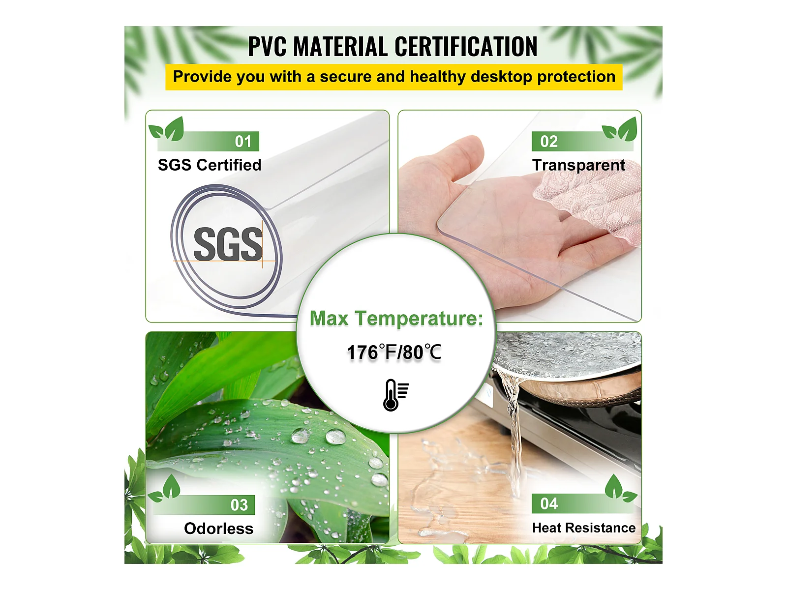 Nappe Transparente SucceBuy Nappe en PVC Transparente, Housse Imperméable, Protection de Bureau 61 x 152 cm