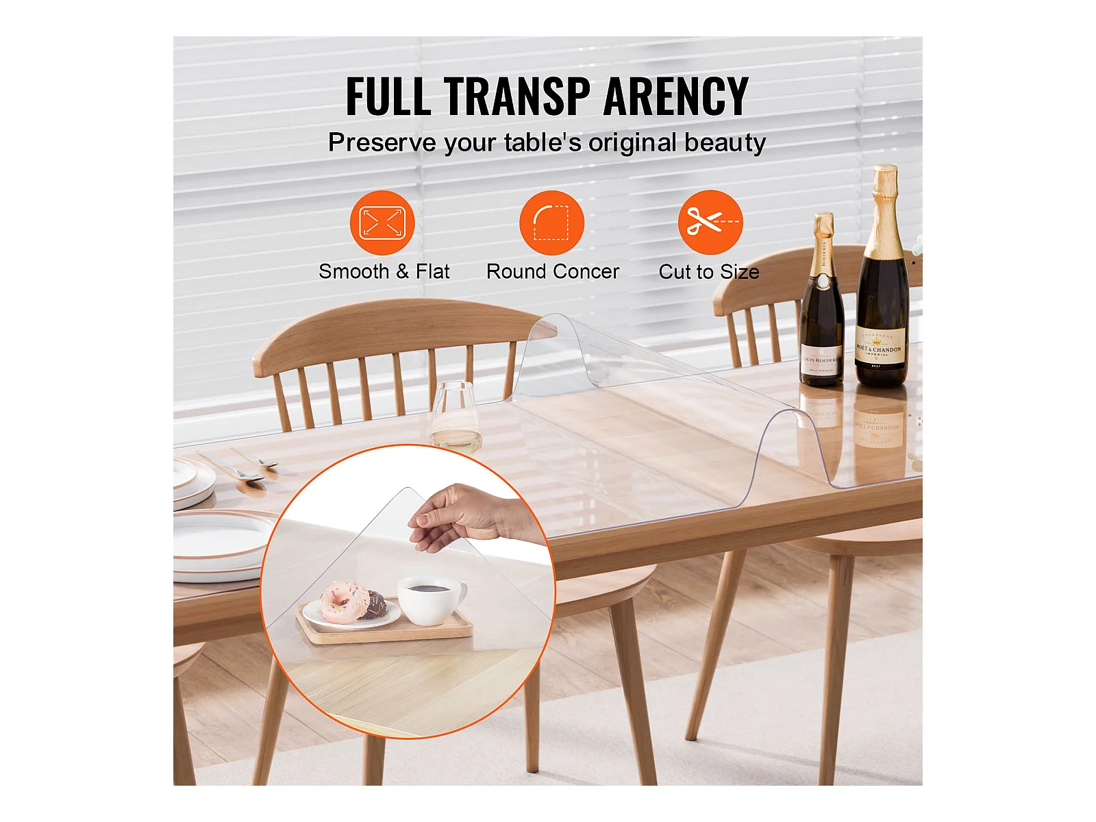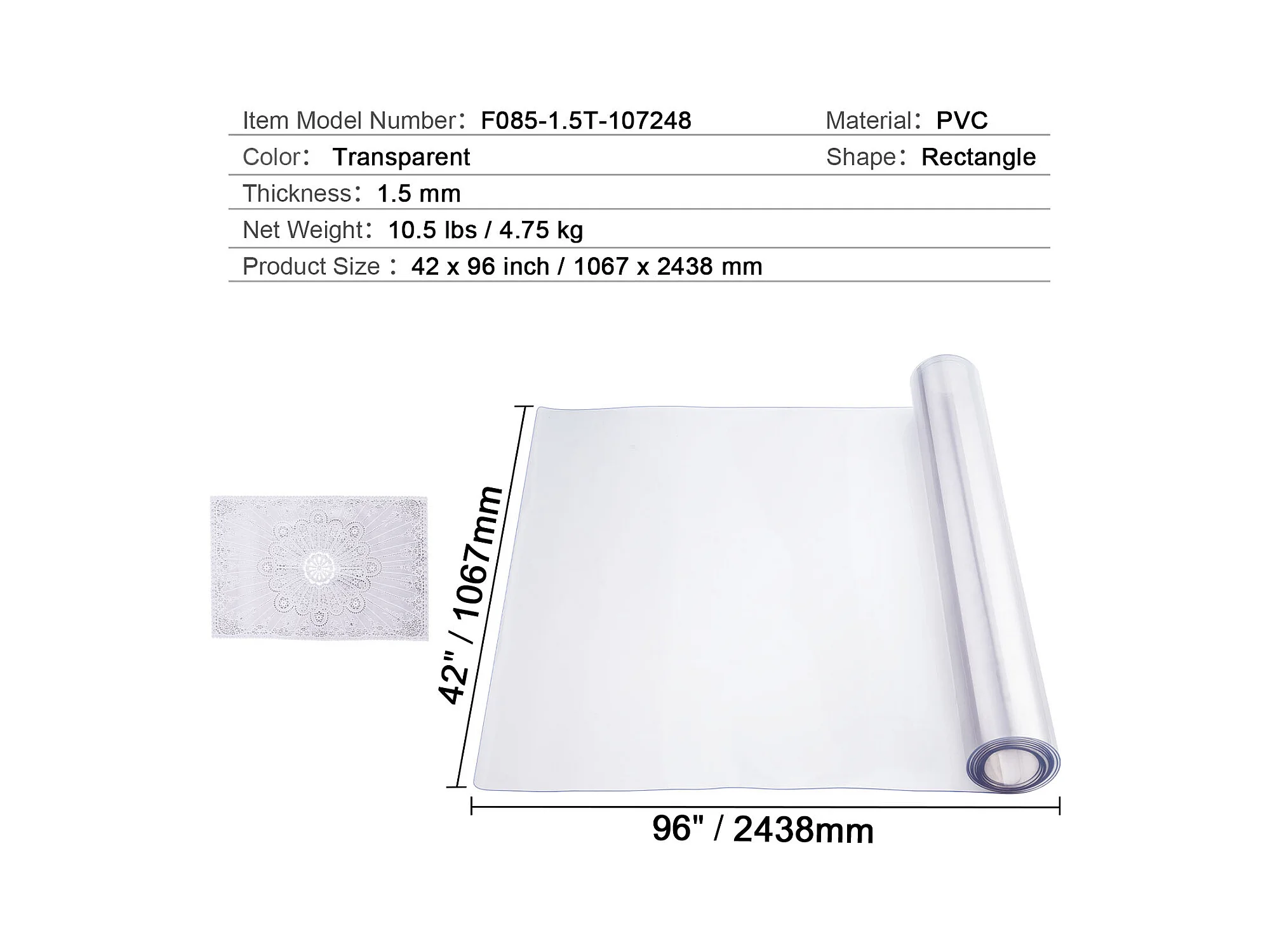 Nappe Transparente SucceBuy Protecteur de Table en PVC 106.68 x 243.84 cm Protecteur de Bureau en Plastique Transparent 1.5 mm d'Épaisseur