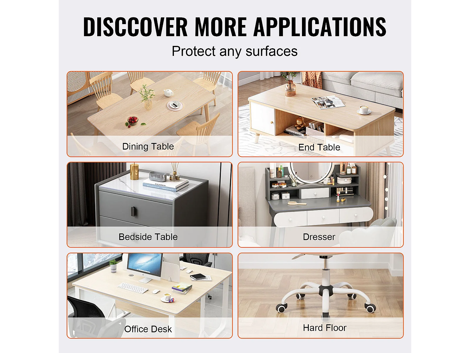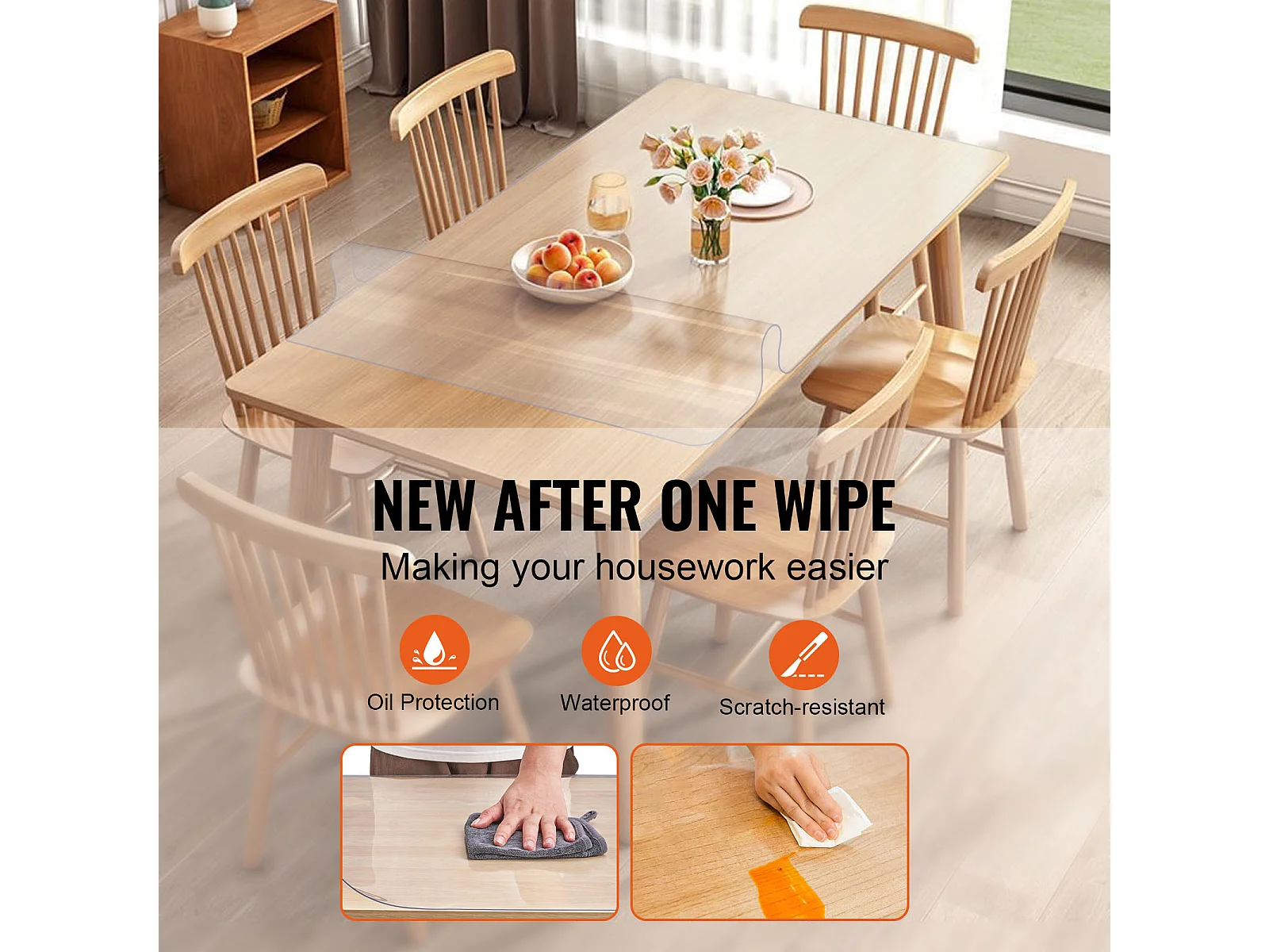Nappe Transparente SucceBuy Protecteur de Table en PVC 91 x 183 cm, Couverture en Plastique Transparent de 1,5 mm d’Épaisseur