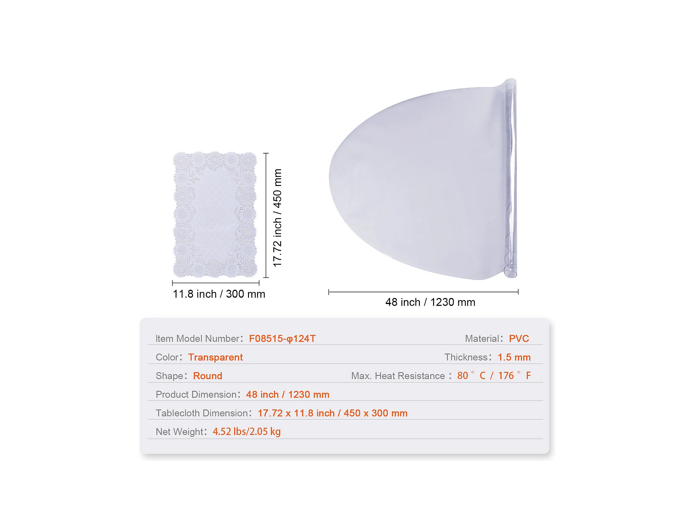 Nappe Transparente SucceBuy Protecteur de Table en PVC, Housse de Bureau Ronde en Plastique Transparent de 123 cm, Épaisseur de 1.5 mm