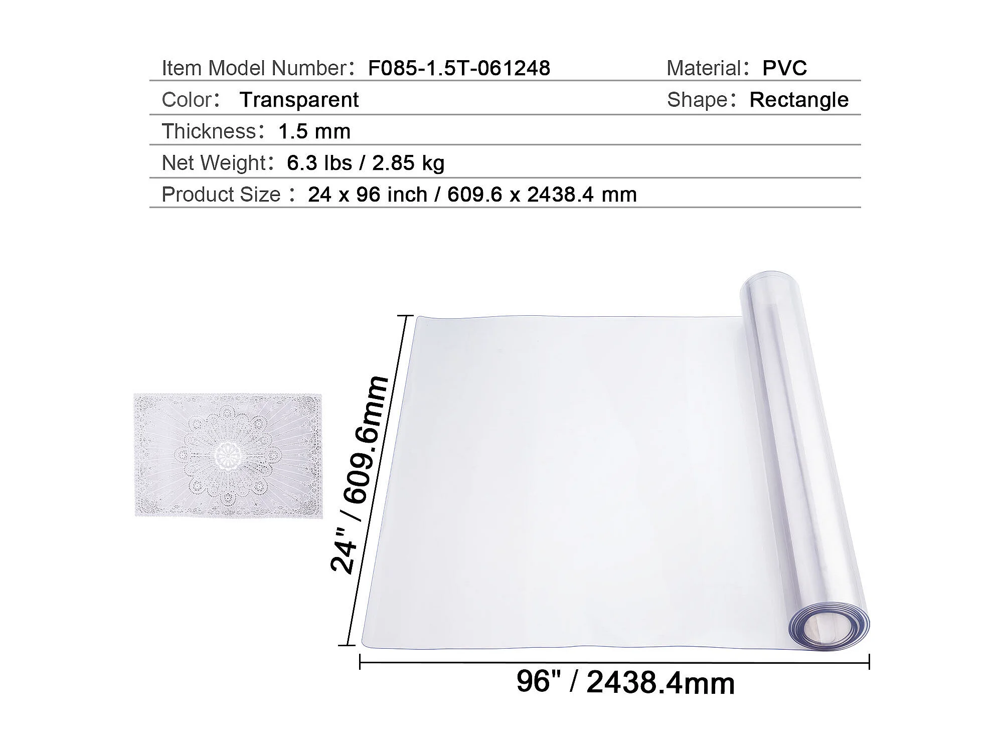 Nappe Transparente SucceBuy Protection de Table en PVC, 61 x 243 cm, Tapis de Bureau en Plastique Transparent, 1.5 mm d'Épaisseur