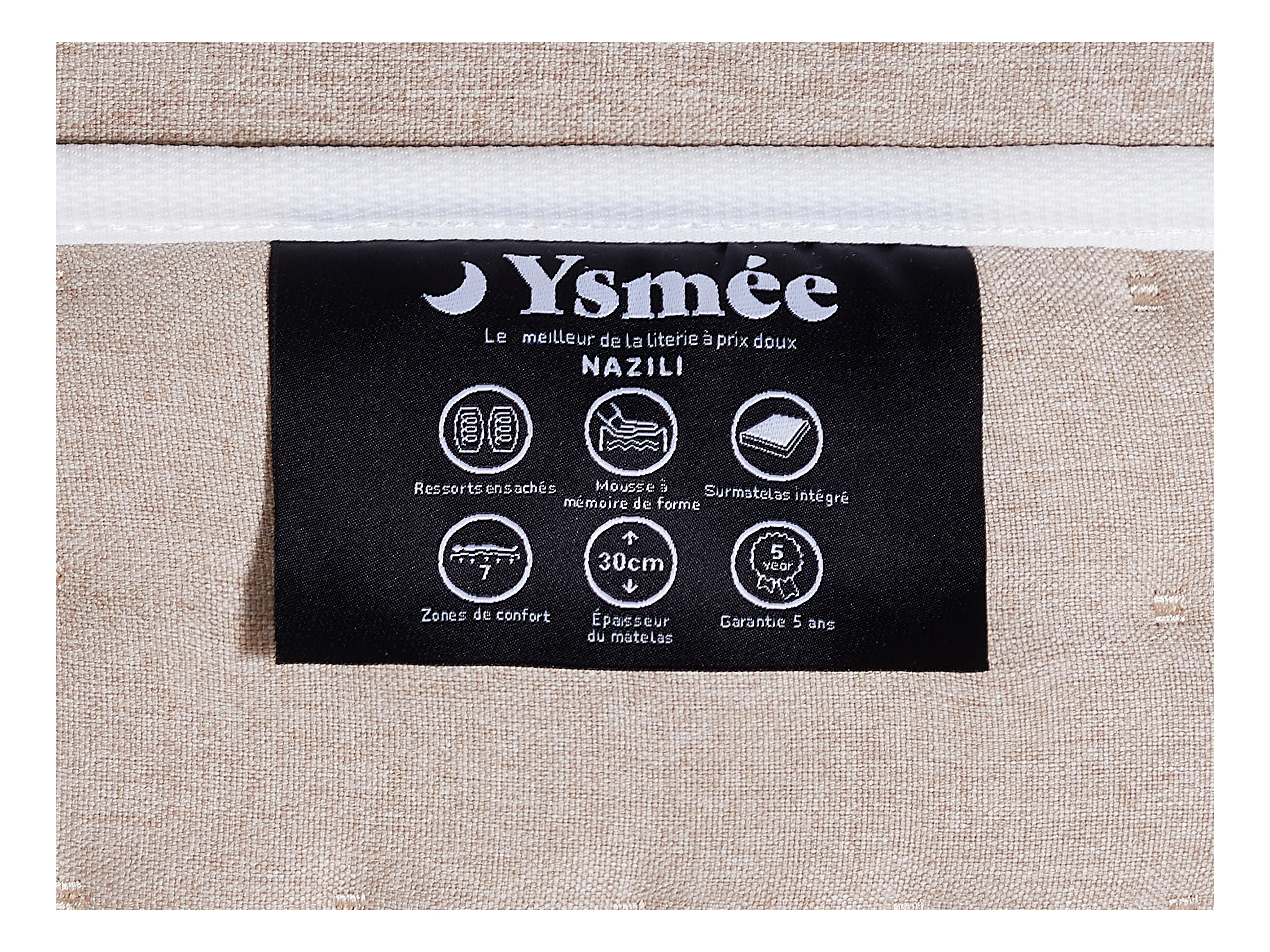 Matelas 140 x 190 cm hybride ressorts ensachés 7 zones et gel à mémoire de forme rafraichissant ép.30cm - NAZILI de YSMÉE