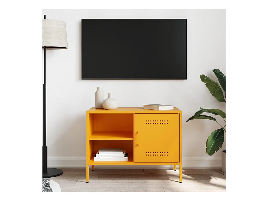 Neris Meuble TV jaune moutarde 68x39x50,5 cm acier