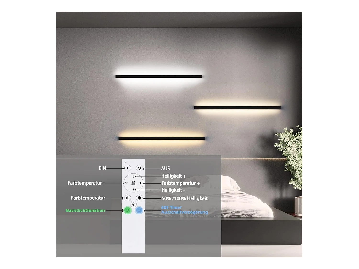 NETTLIFE 2 appliques murales LED applique d'intérieur 100CM noir design moderne dimmable blanc chaud