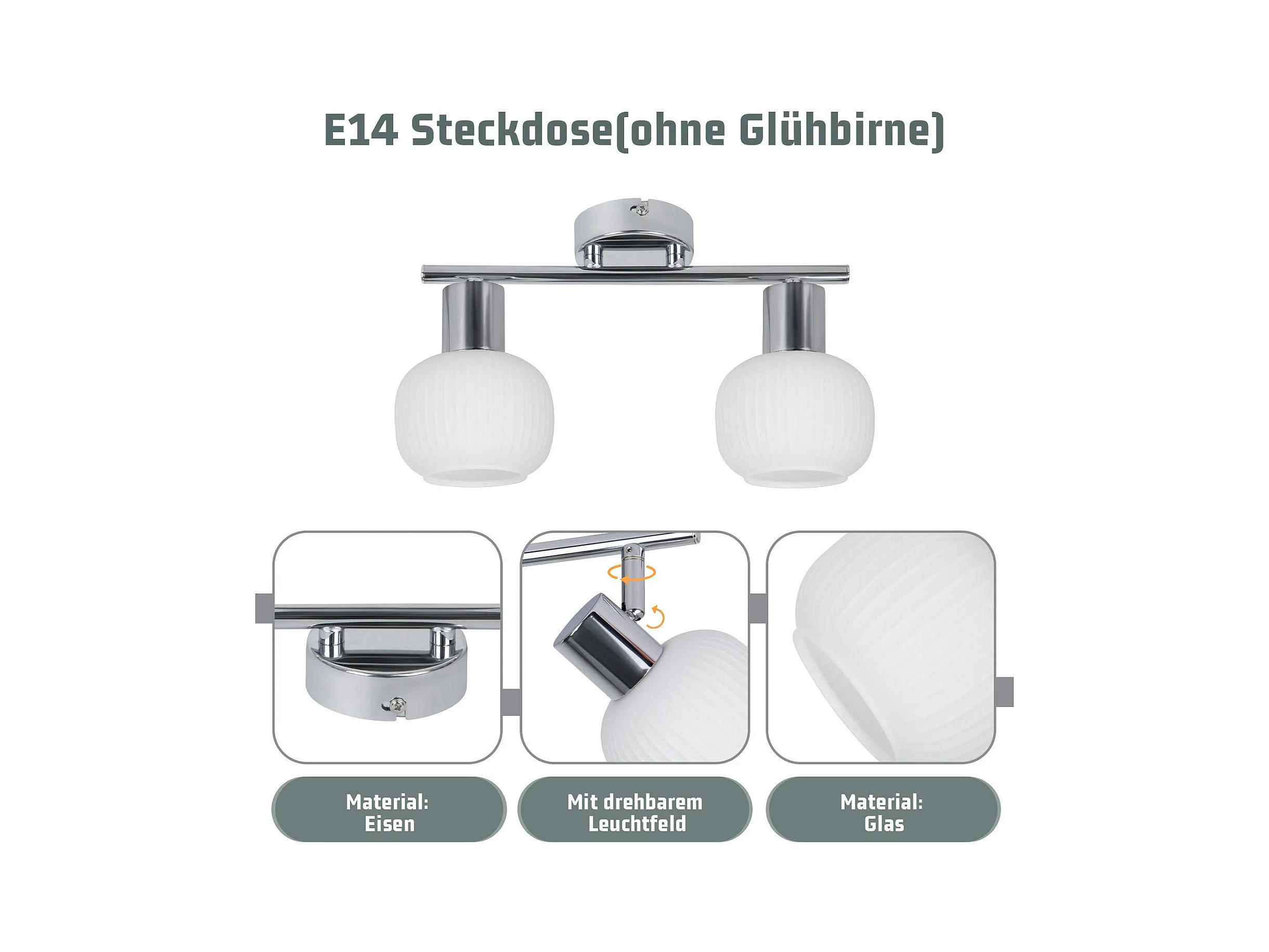 NETTLIFE 2 Spot de plafond blanc E14 intérieur vintage abat-jour en verre spot sans ampoules