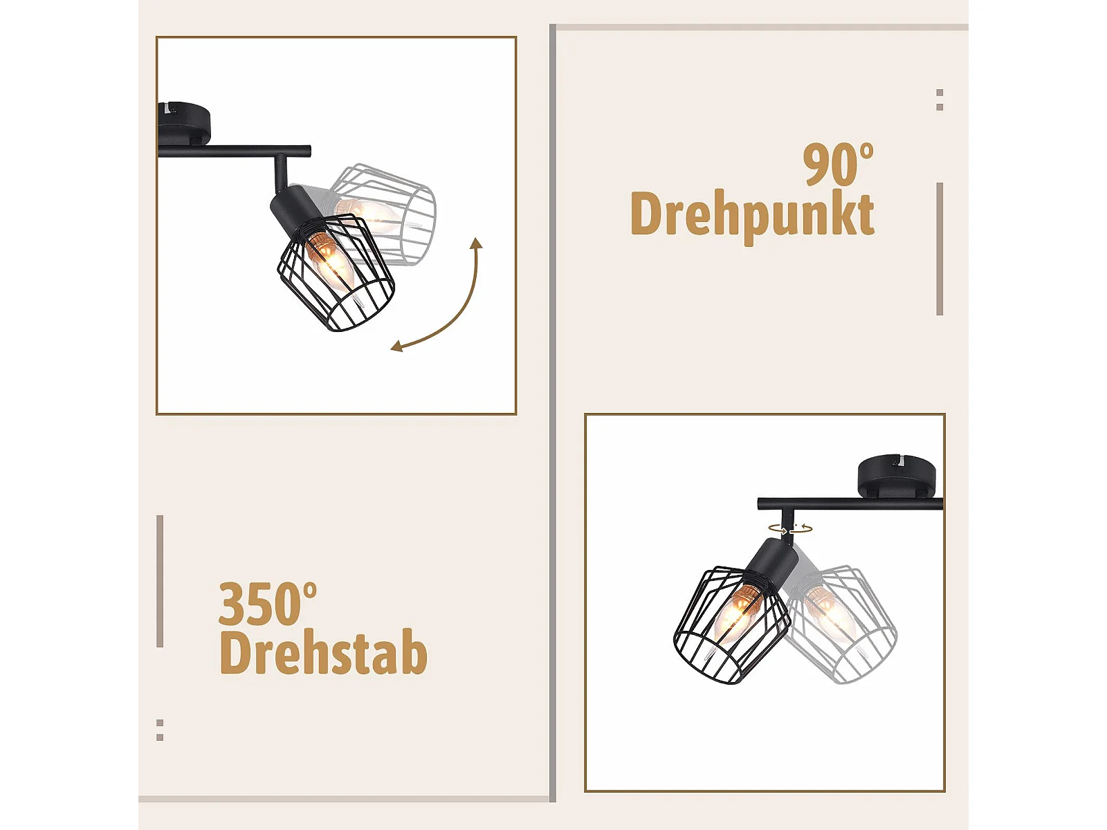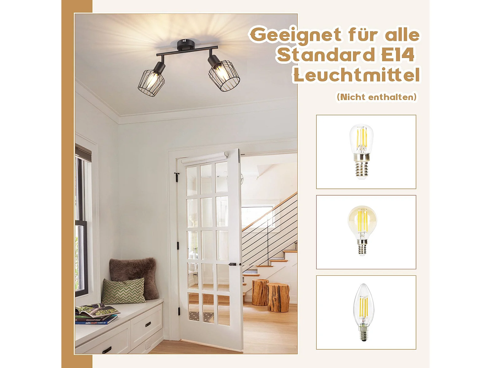 NETTLIFE 2 Spots de Plafond E14 - métal, lampe de couloir industrielle pivotante à 350°, applique murale pour couloir et salon,noir