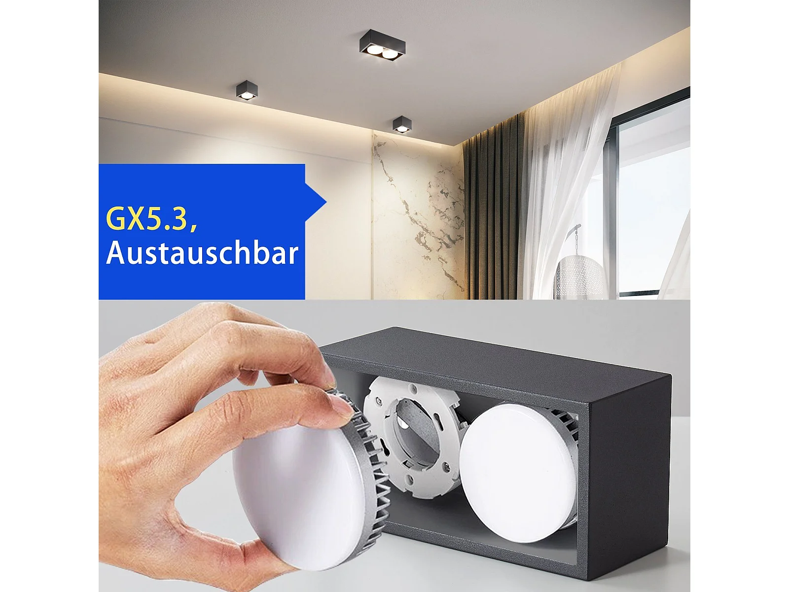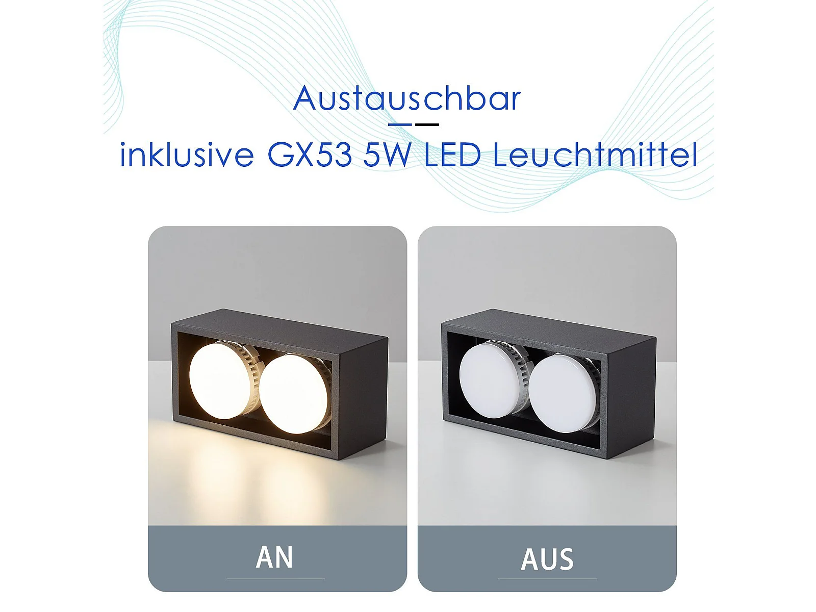 NETTLIFE 2 Spots de plafond en saillie noir avec lumière orientable blanc chaud moderne 2x5W GX53 carré plat pour cuisine salon salle à manger
