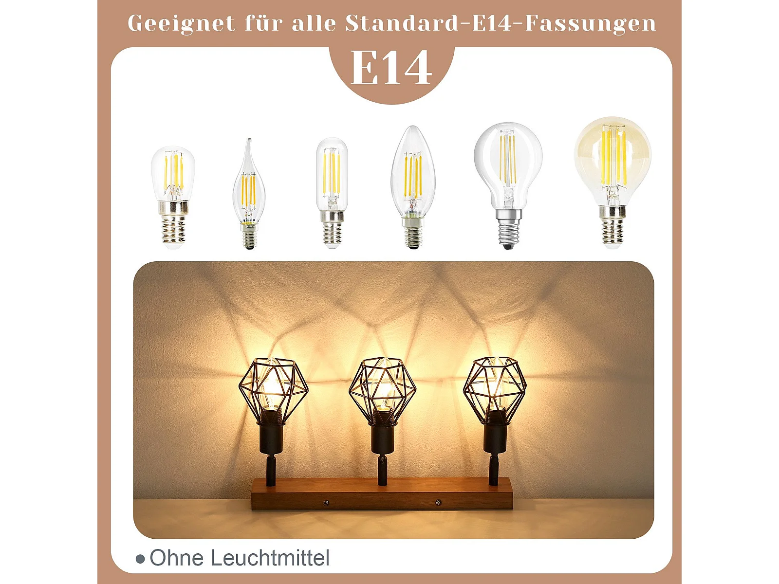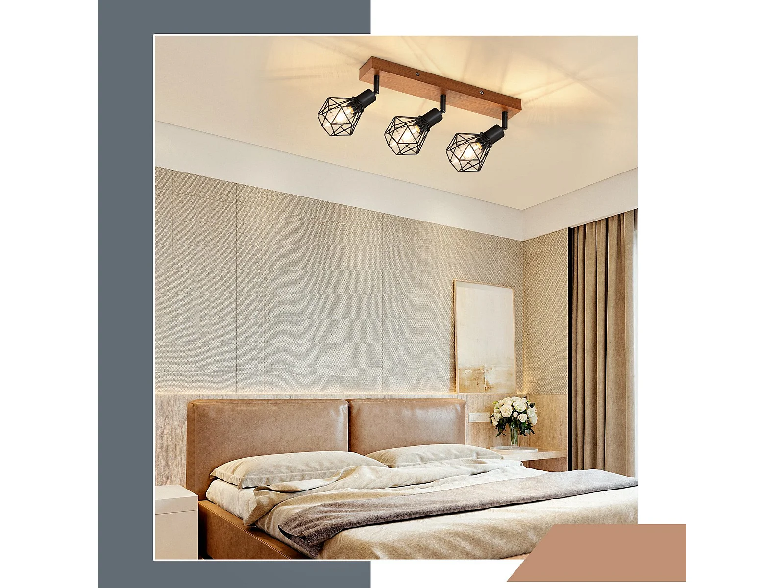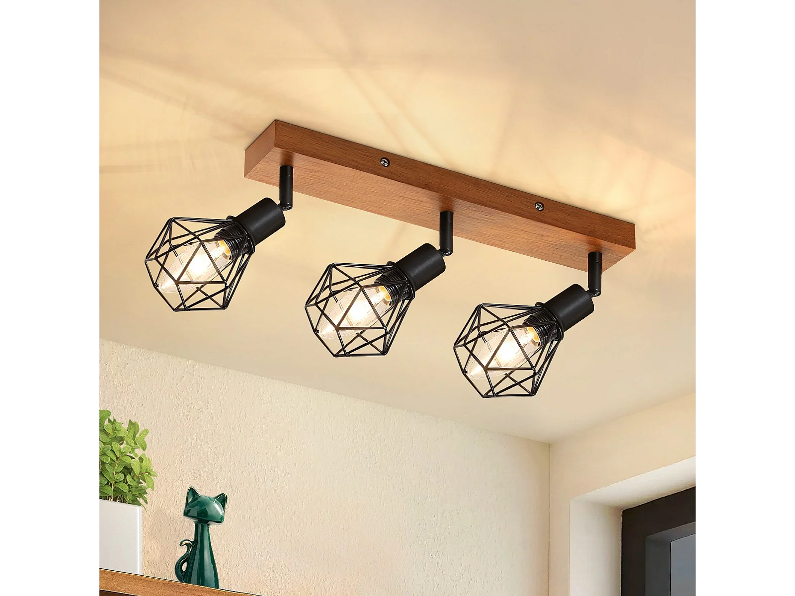 NETTLIFE 3 spots de plafond bois noir E14 rétro métal orientable 350° intérieur MAX.25W pour salle à manger cuisine salon chambre sans ampoule