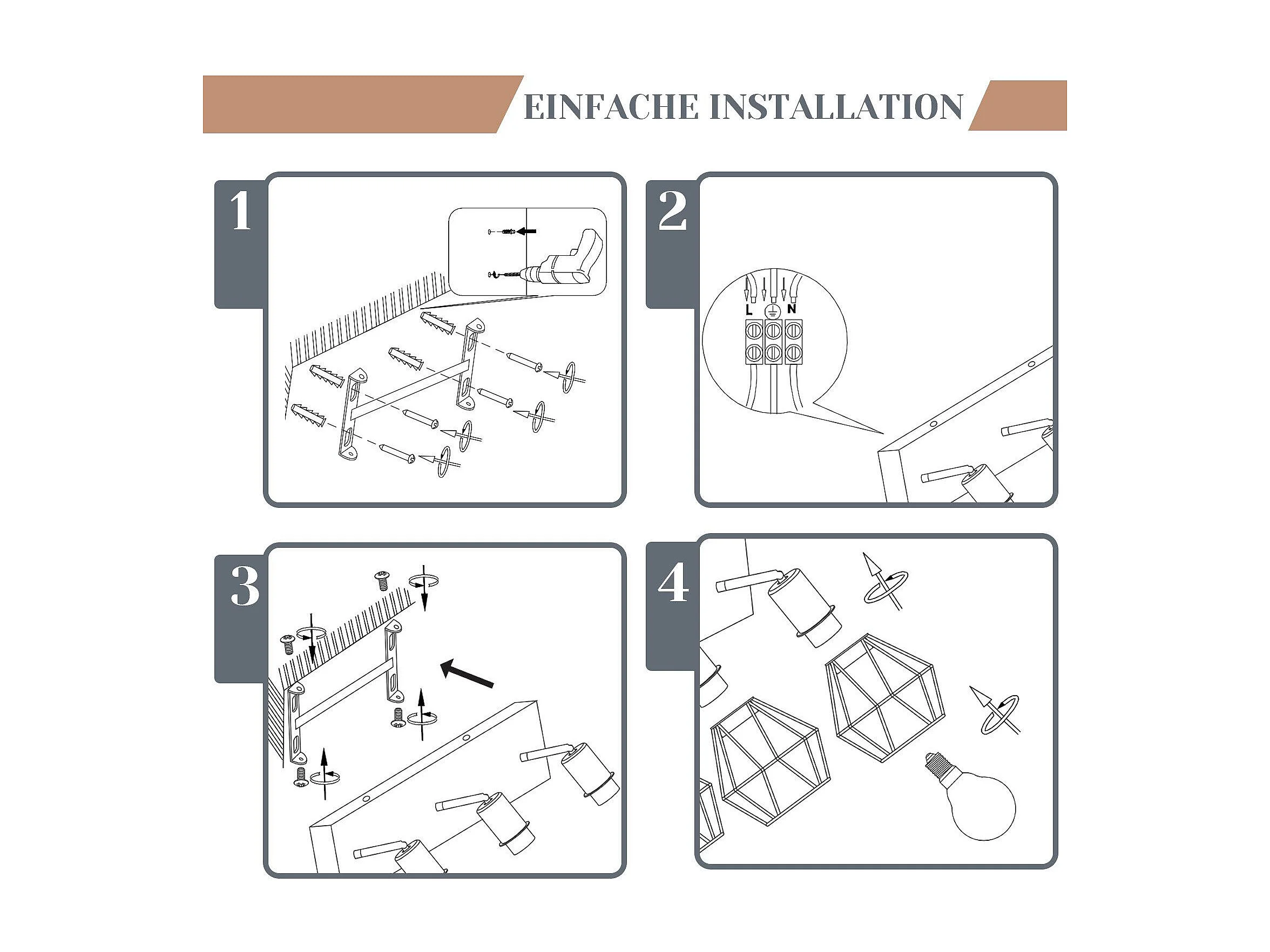 NETTLIFE Spot E27 noir lampe murale vintage pivotante à 350°lampe de cuisine pour salon, chambre à coucher Max.40 W