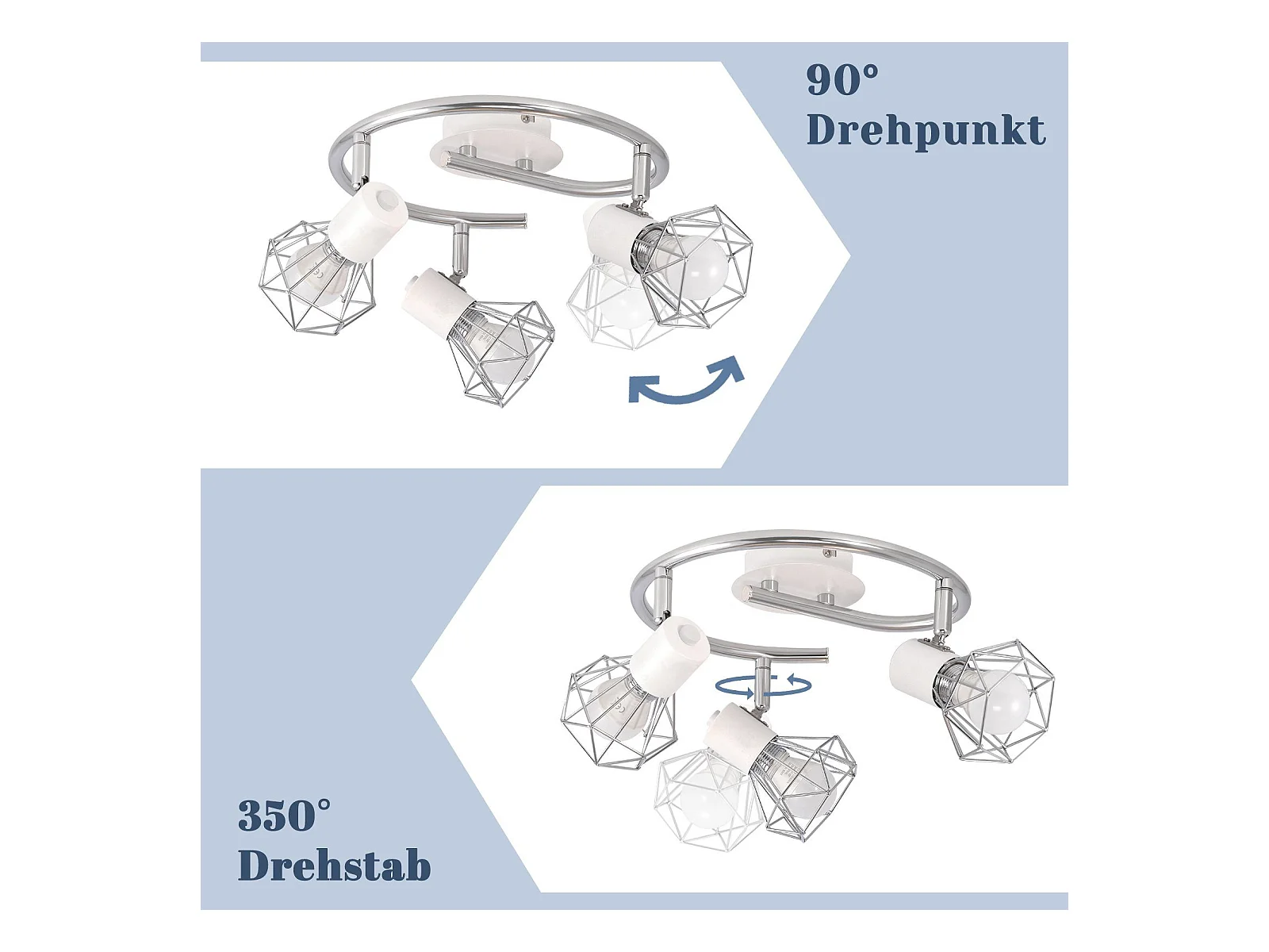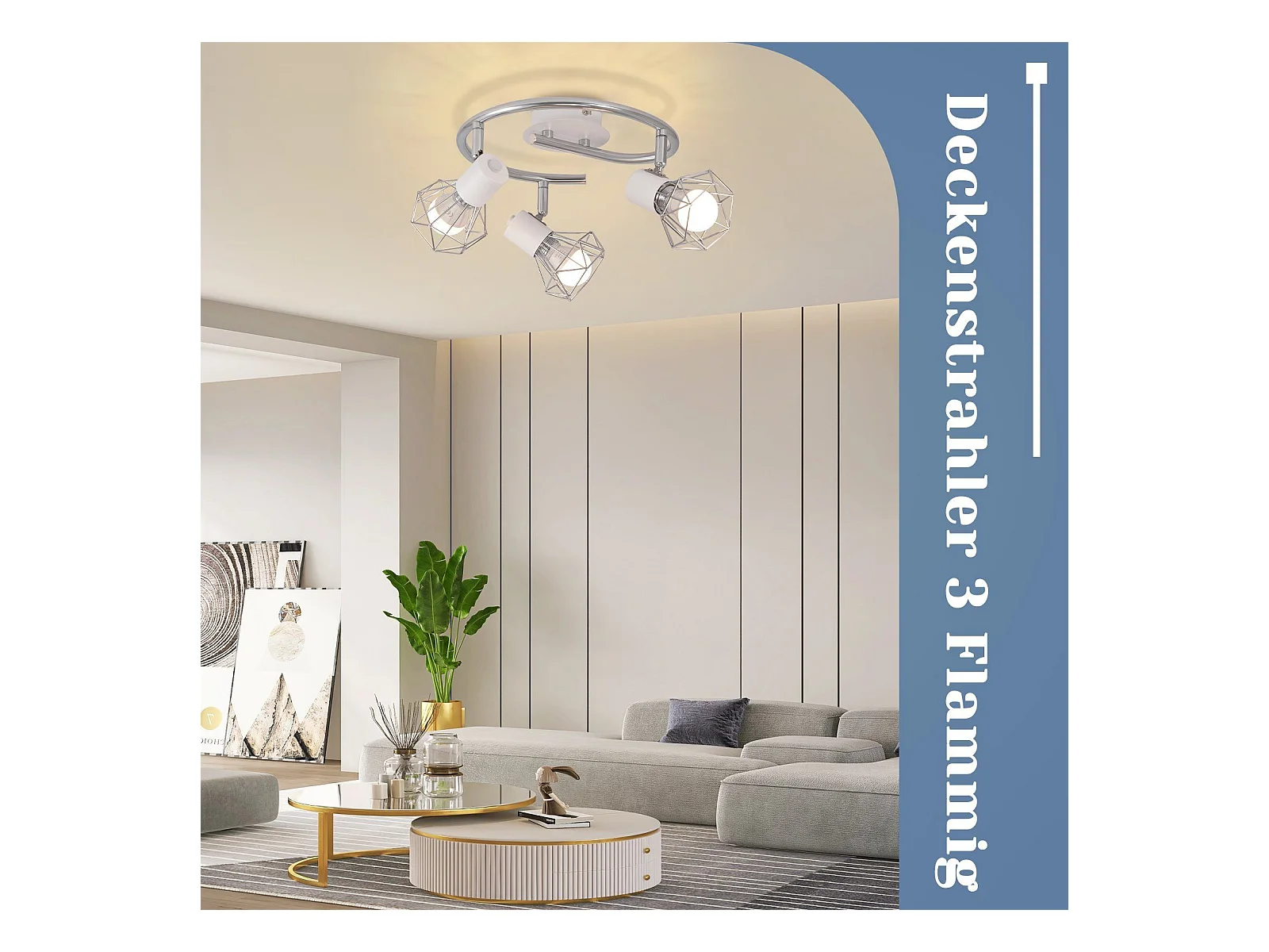 NETTLIFE 3 Spots de Plafond E14 Rond Industriel Rétro Pivotant en Métal Blanc pour Salon Étude Couloir Cuisine Ampoules Max. 25W