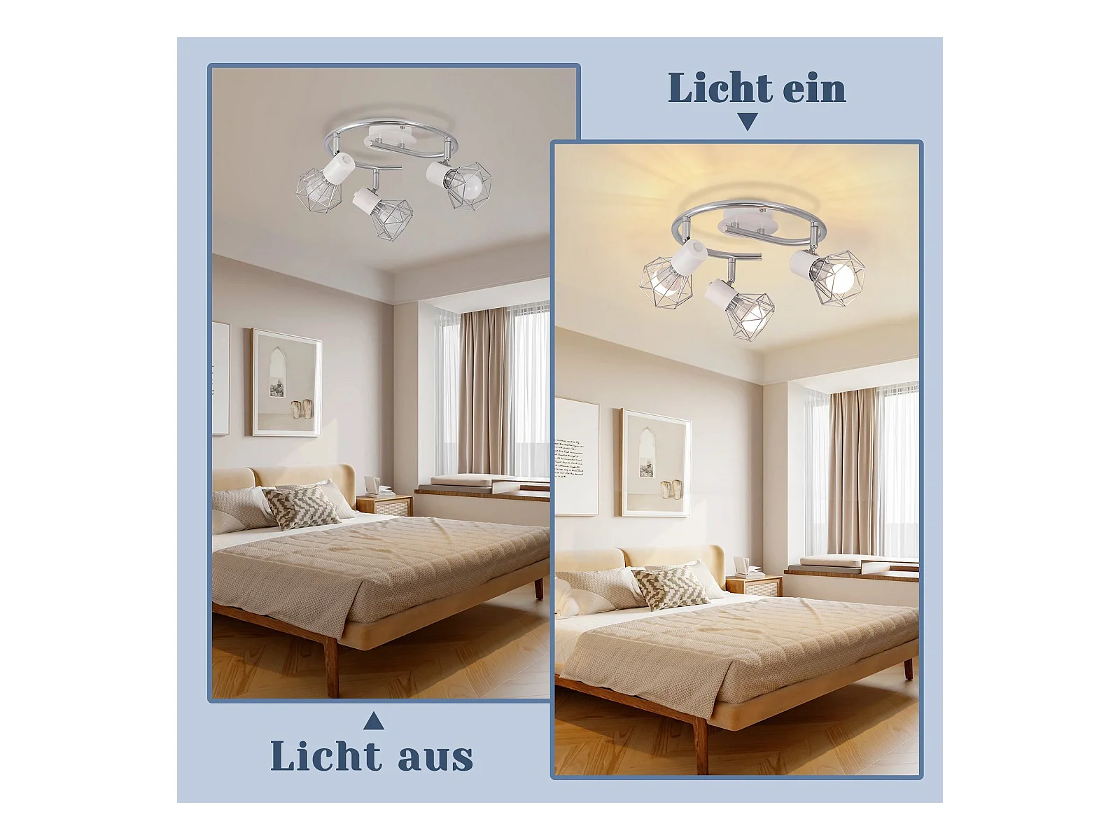 NETTLIFE 4 Spots de plafond vintage industriel rétro E14 pivotants à 350°métal blanc lumineux pour intérieur cuisine salon chambre d'enfant