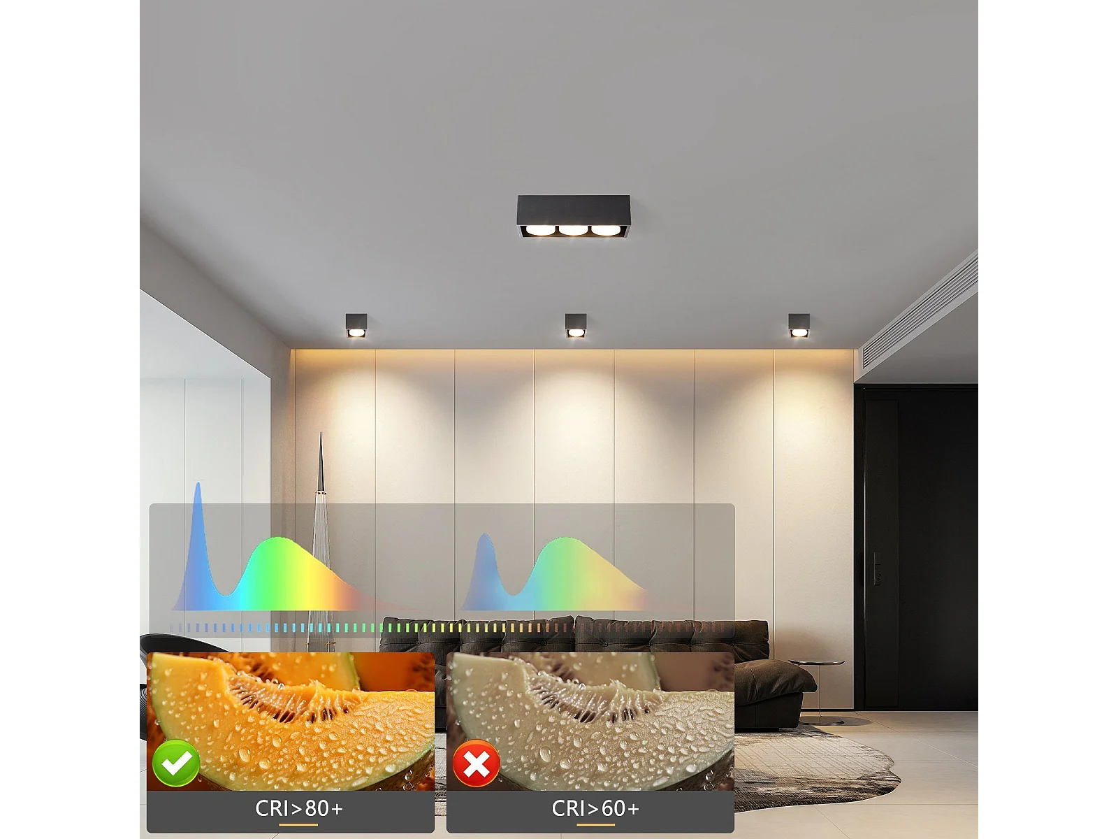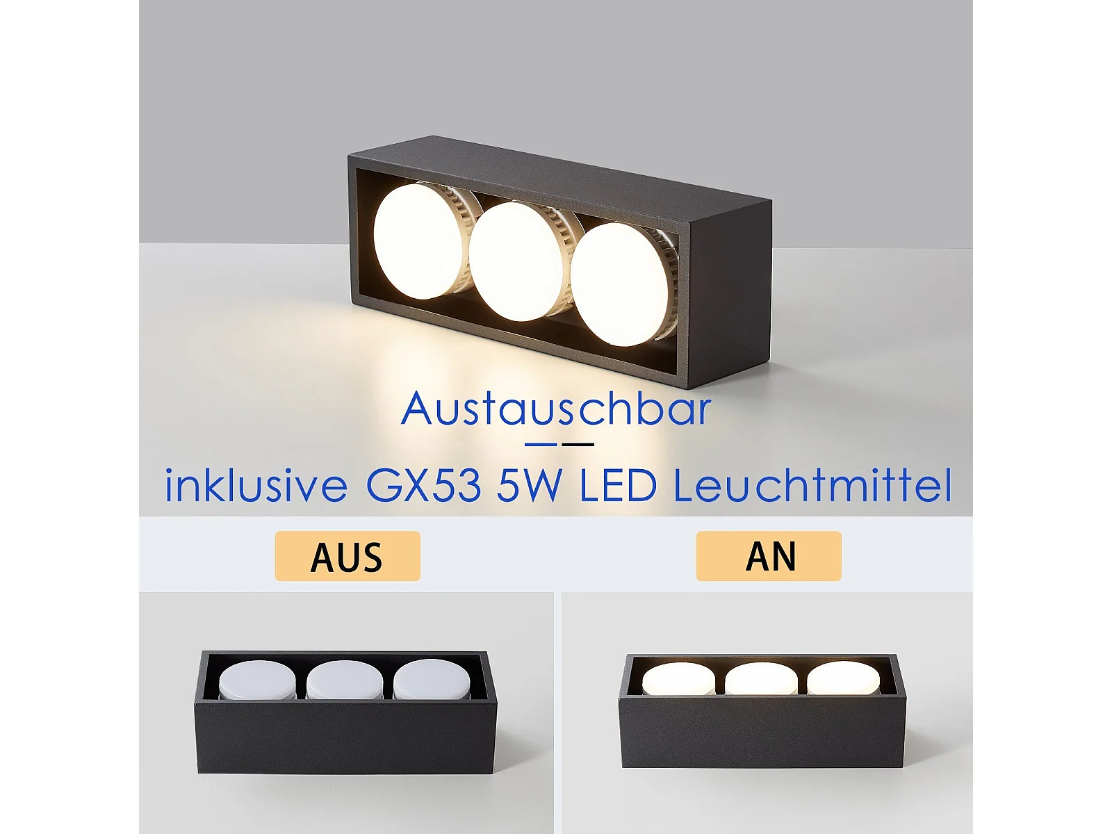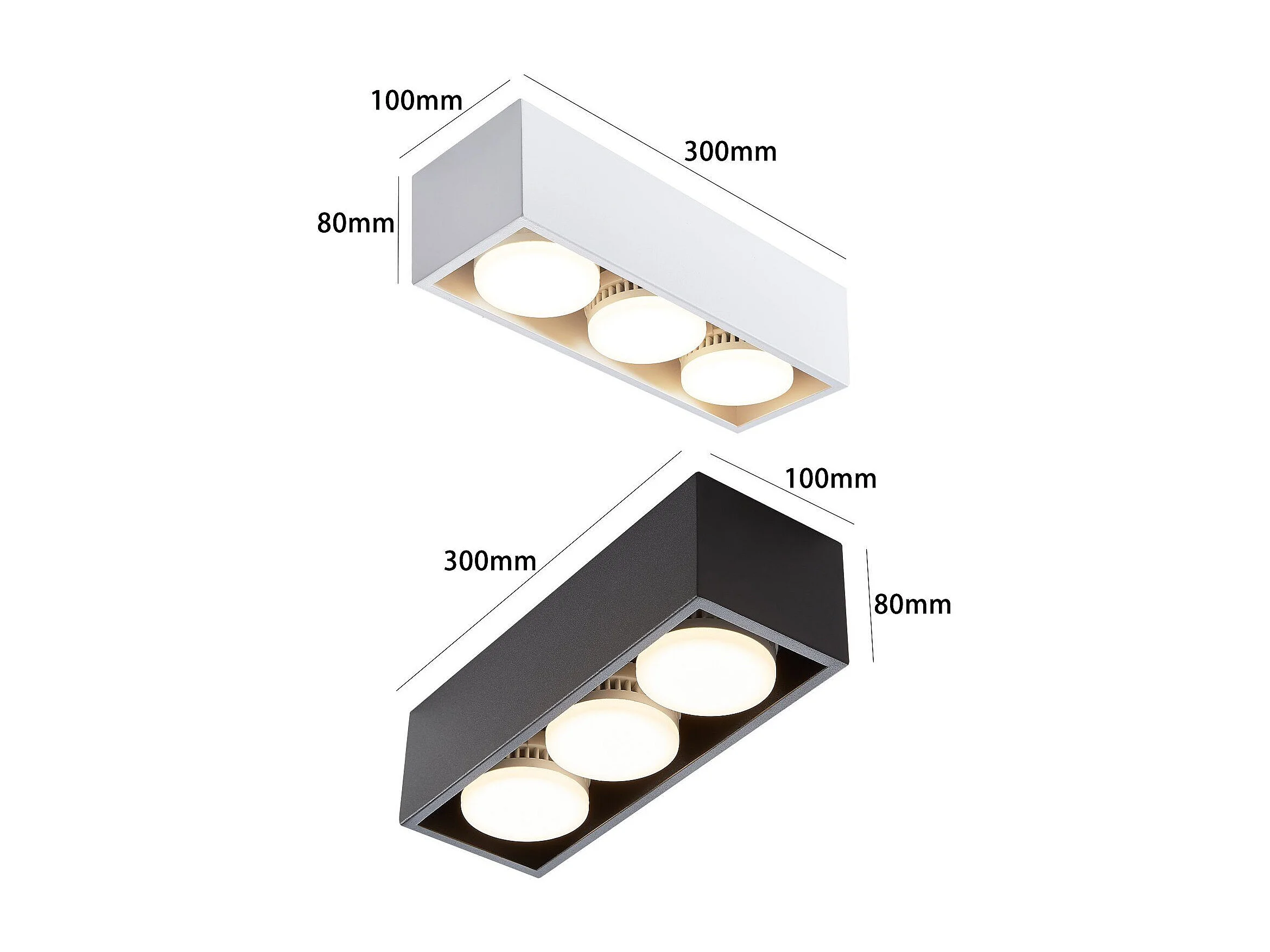 NETTLIFE 3 Spots de plafond en saillie LED carré noir orientables blanc chaud 3x5W GX53 pour cuisine salon salle à manger chambre couloir