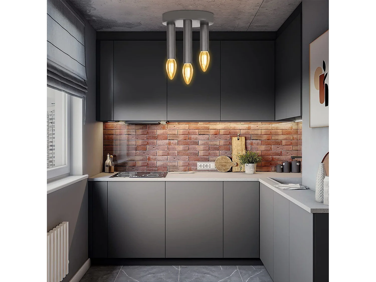 Suspension lustre et plafonnier gris