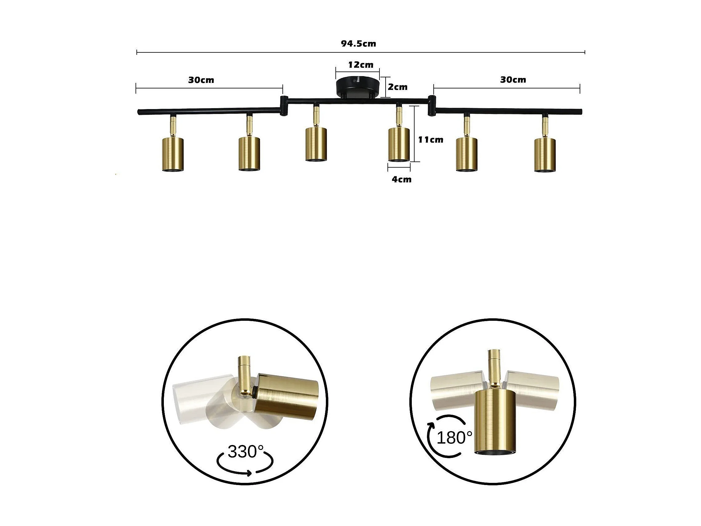 NETTLIFE 6 Spots de Plafond Plafonnier E27 Rétro Vintage Or Pivotants en Métal pour Chambre Max. 25W (Ampoules Non Incluses)