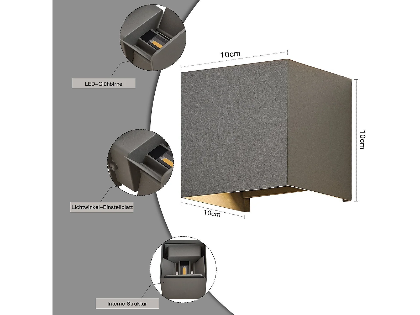 NETTLIFE Applique LED 5W,4 pièces -Lampe Murale Extérieur/Intérieure gris,double faisceau réglable étanche IP65 230V 3000K
