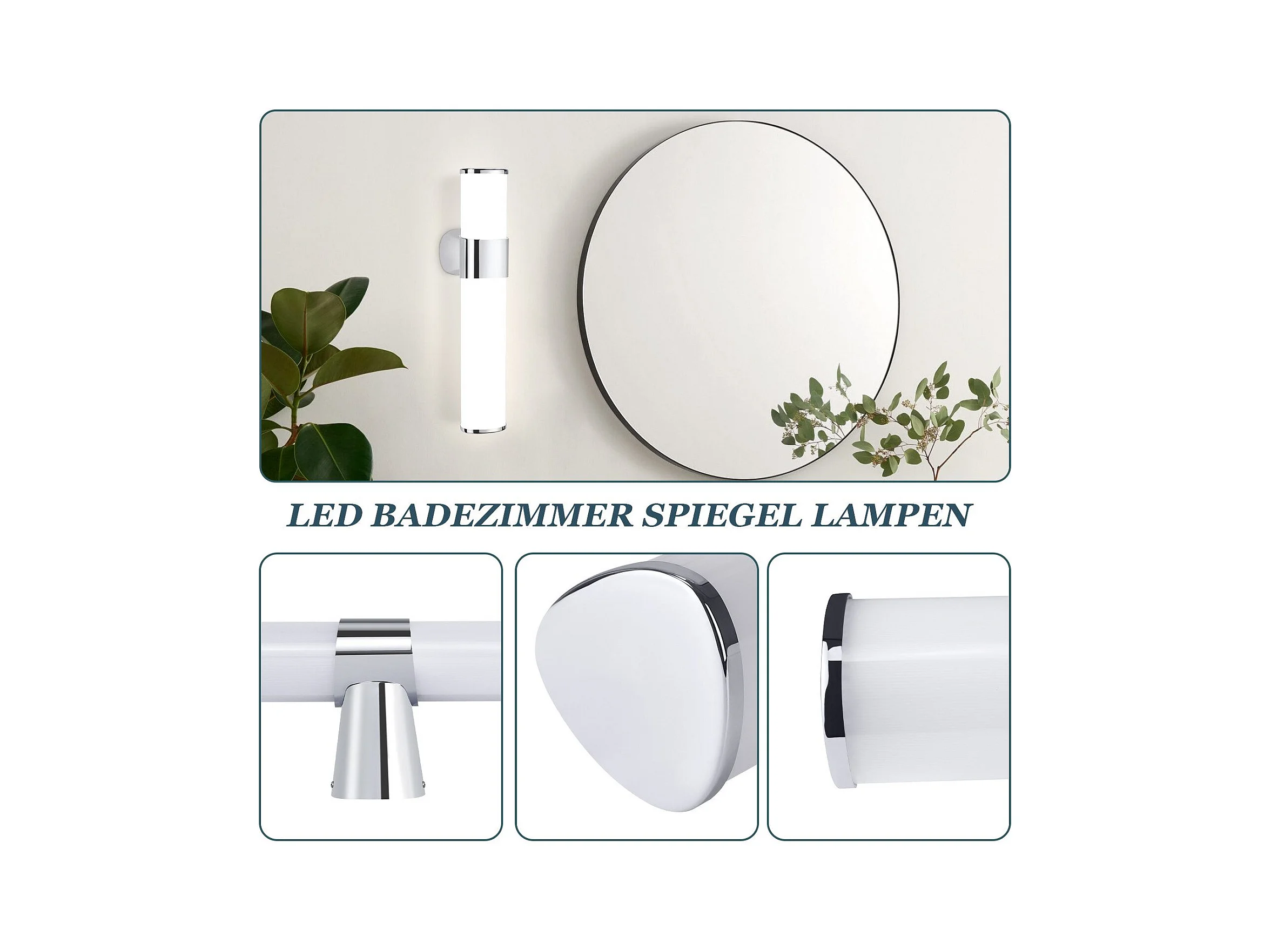 NETTLIFE applique miroir LED avec prise 10W lot de 2 blanc neutre 4000K chrome