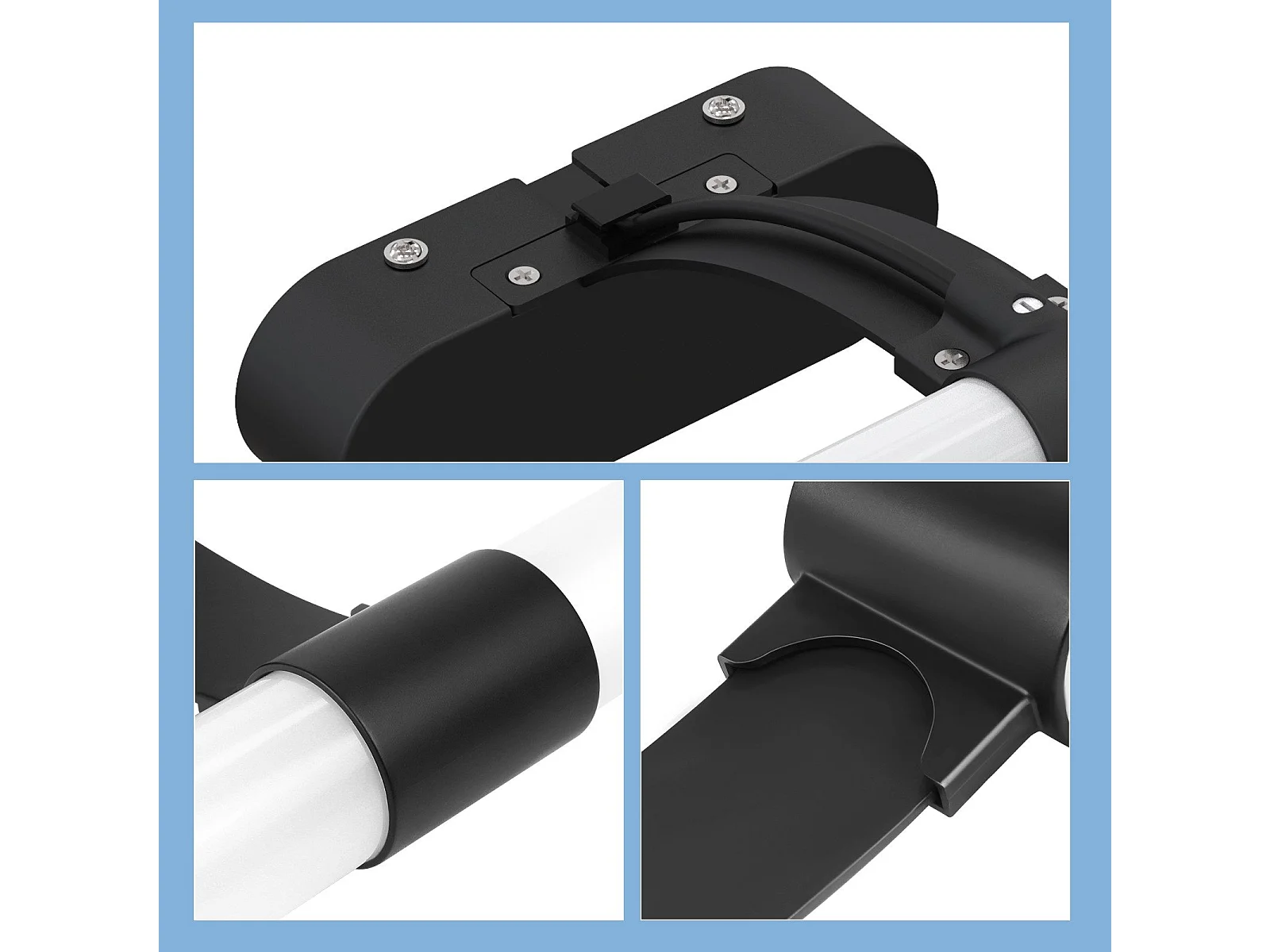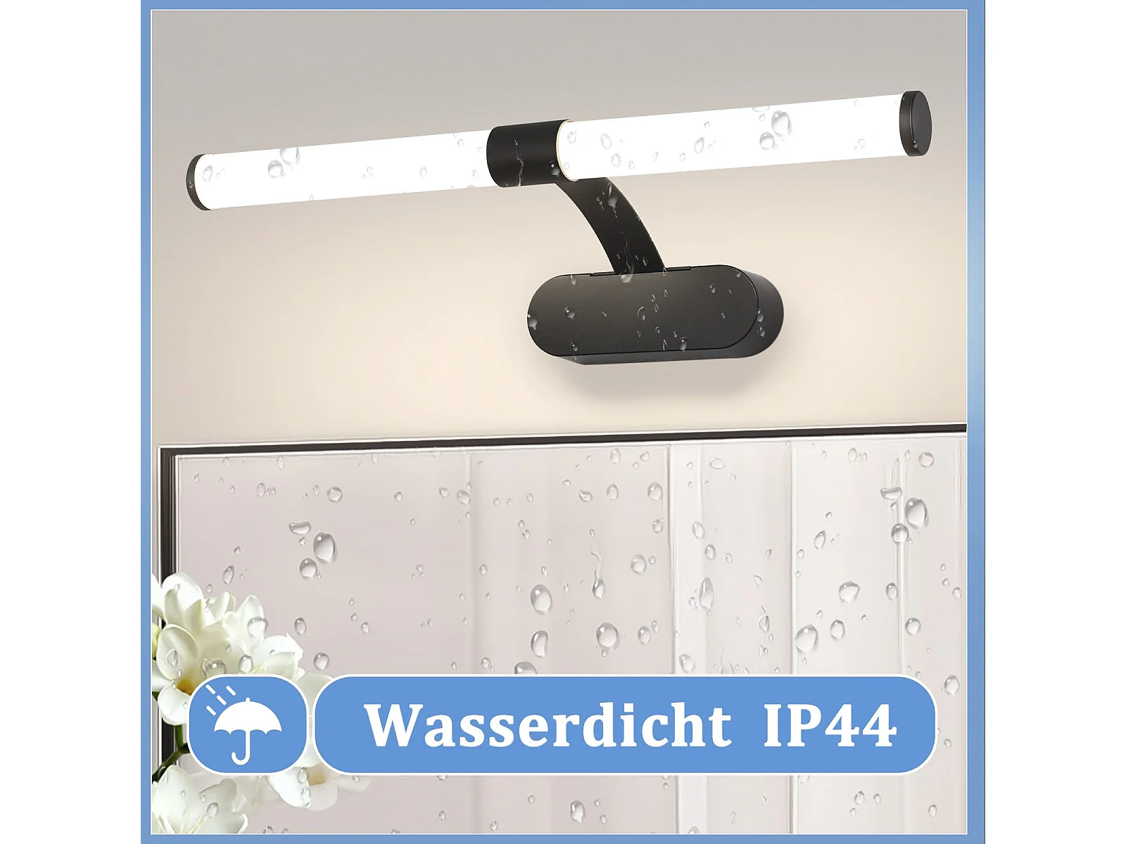 NETTLIFE Applique LED salle de bain, LED lampe à miroir 4000K blanc neutre , IP44,8W ,60CM - noir lampe murale moderne étanche lampe murale