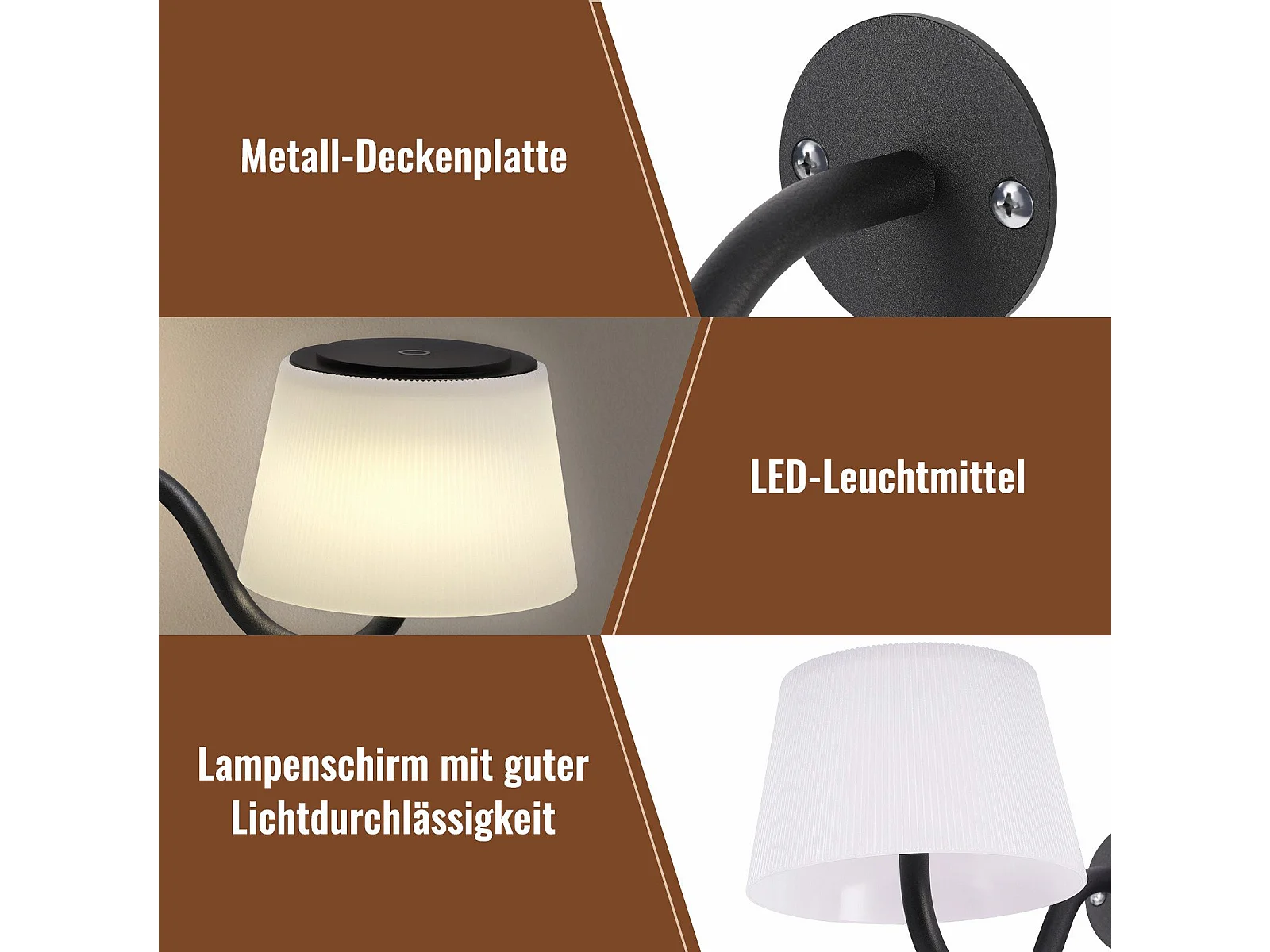 NETTLIFE Applique murale d'intérieur à piles avec interrupteur : appliques murales led à intensité variable, noires, sans fil, modernes