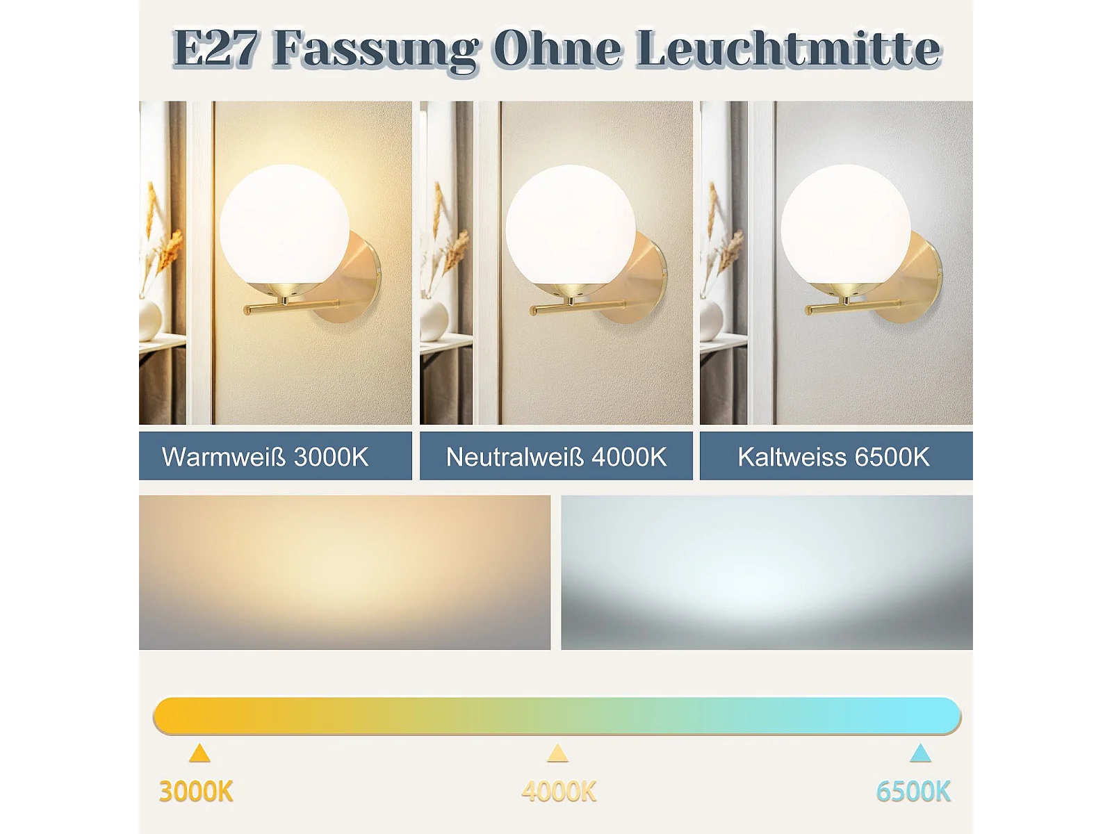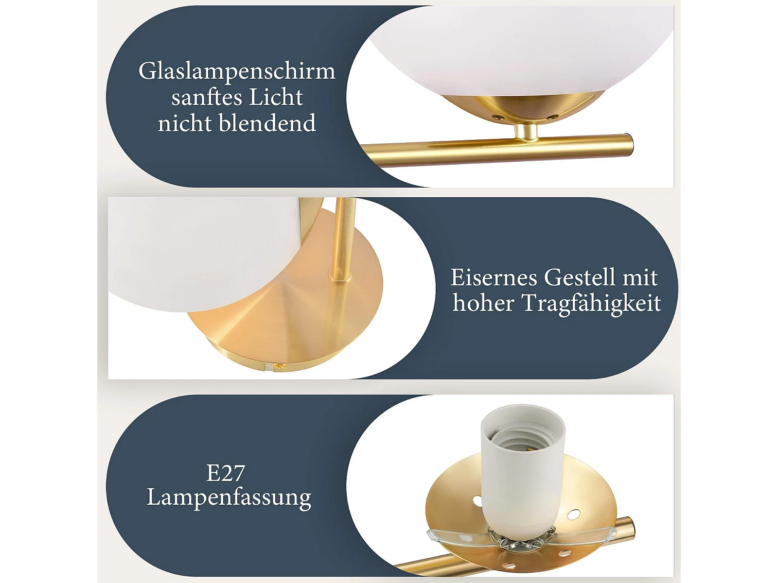 NETTLIFE Applique murale d'intérieur E14 boule de verre doré rétro moderne éclairage mural de chambre à coucher