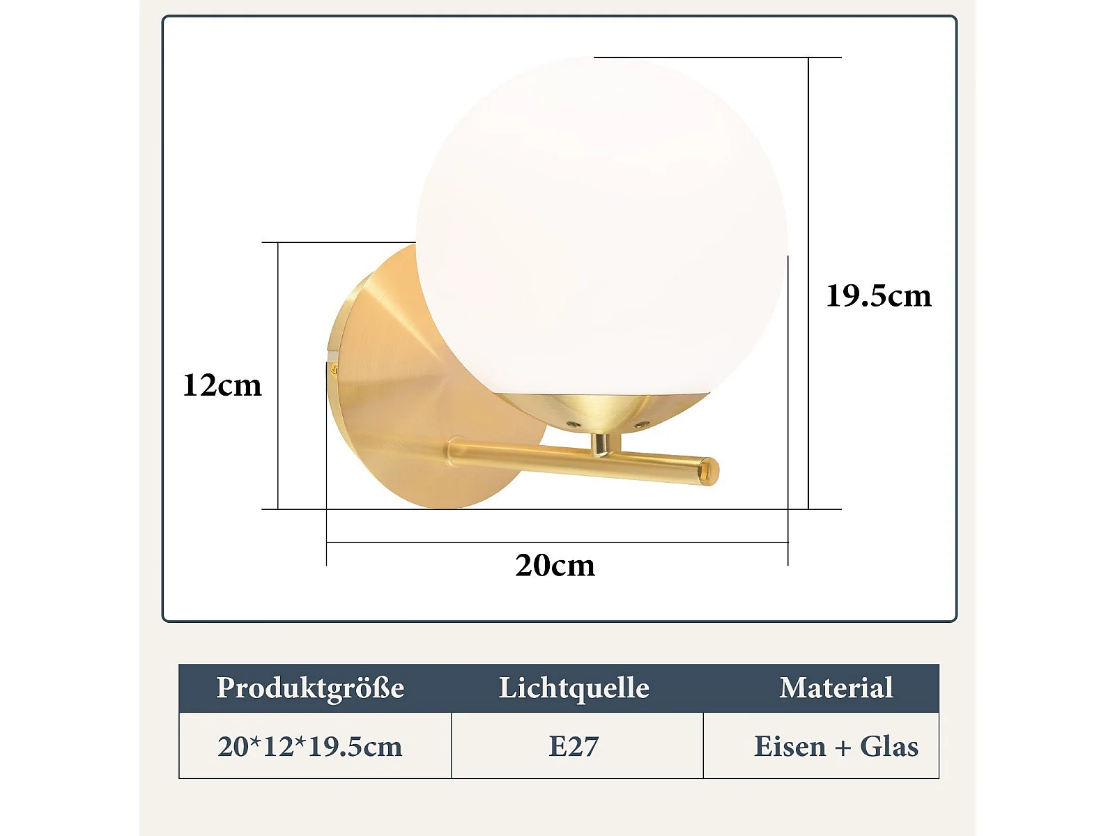 NETTLIFE Applique Murale Intérieur Chambre Couloir Lampe Boule de Verre Doré Vintage E27 Lampe de Chevet en Métal