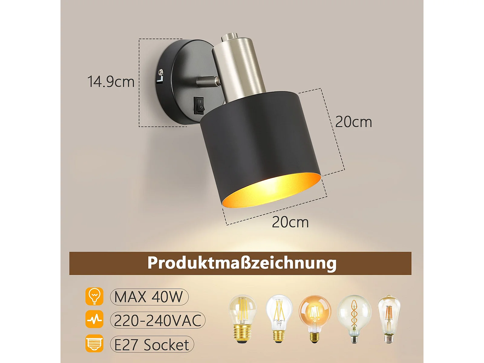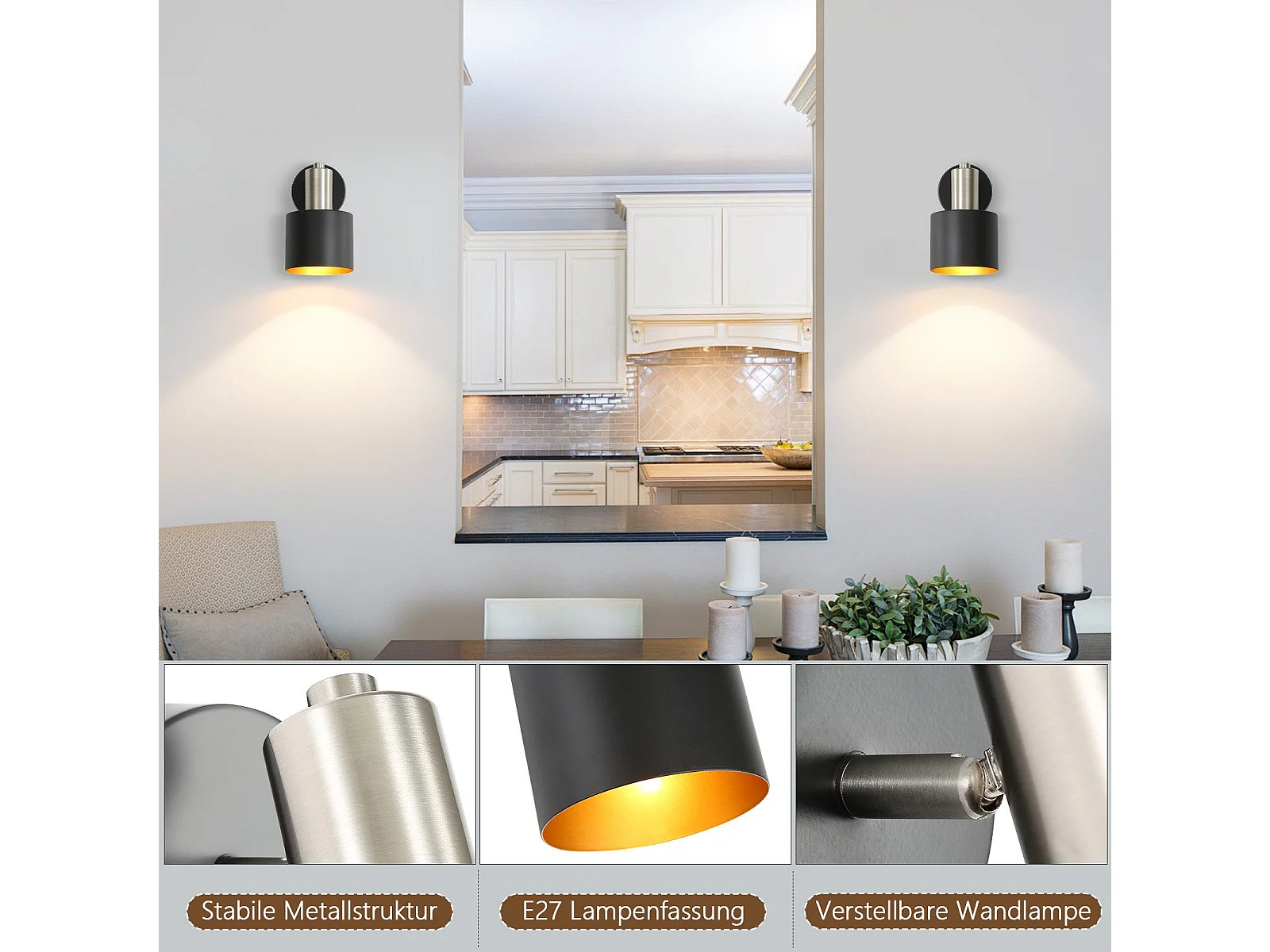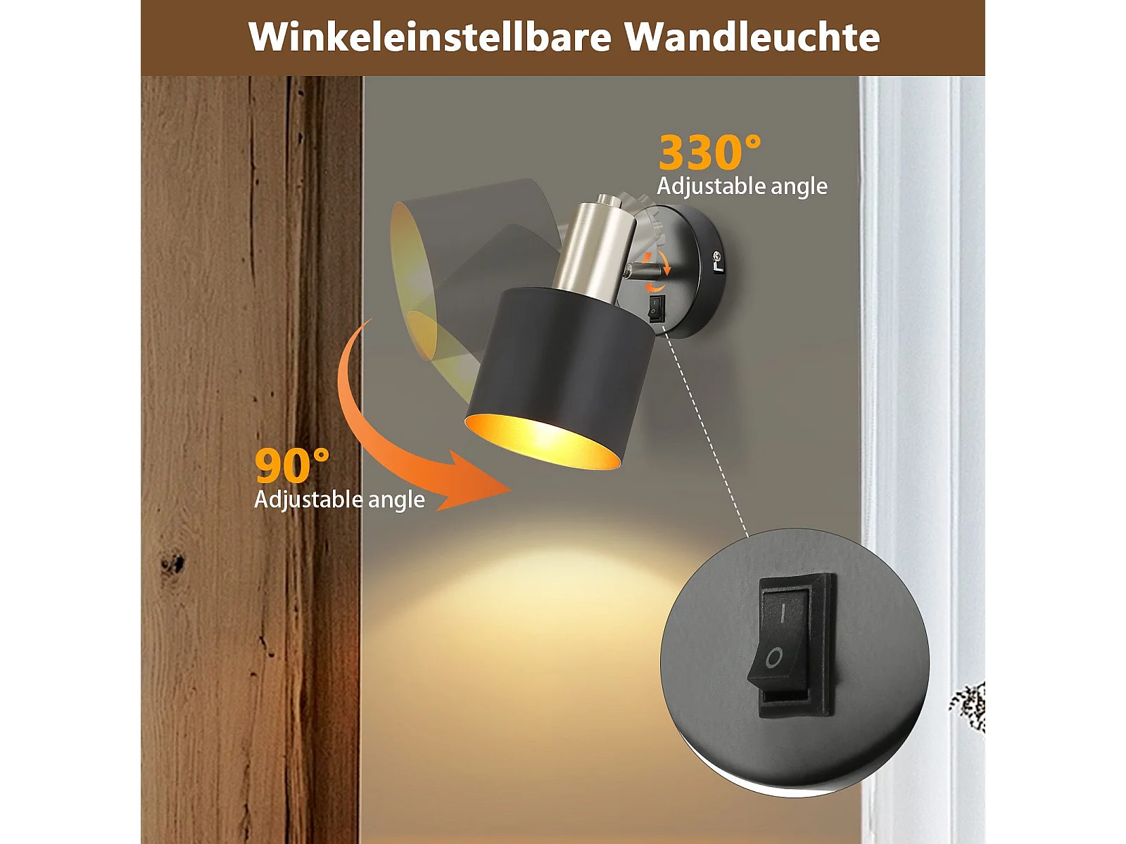 NETTLIFE Applique Murale Intérieur Spot Mural Vintage Noir 330° Pivotant E27 Petit Métal