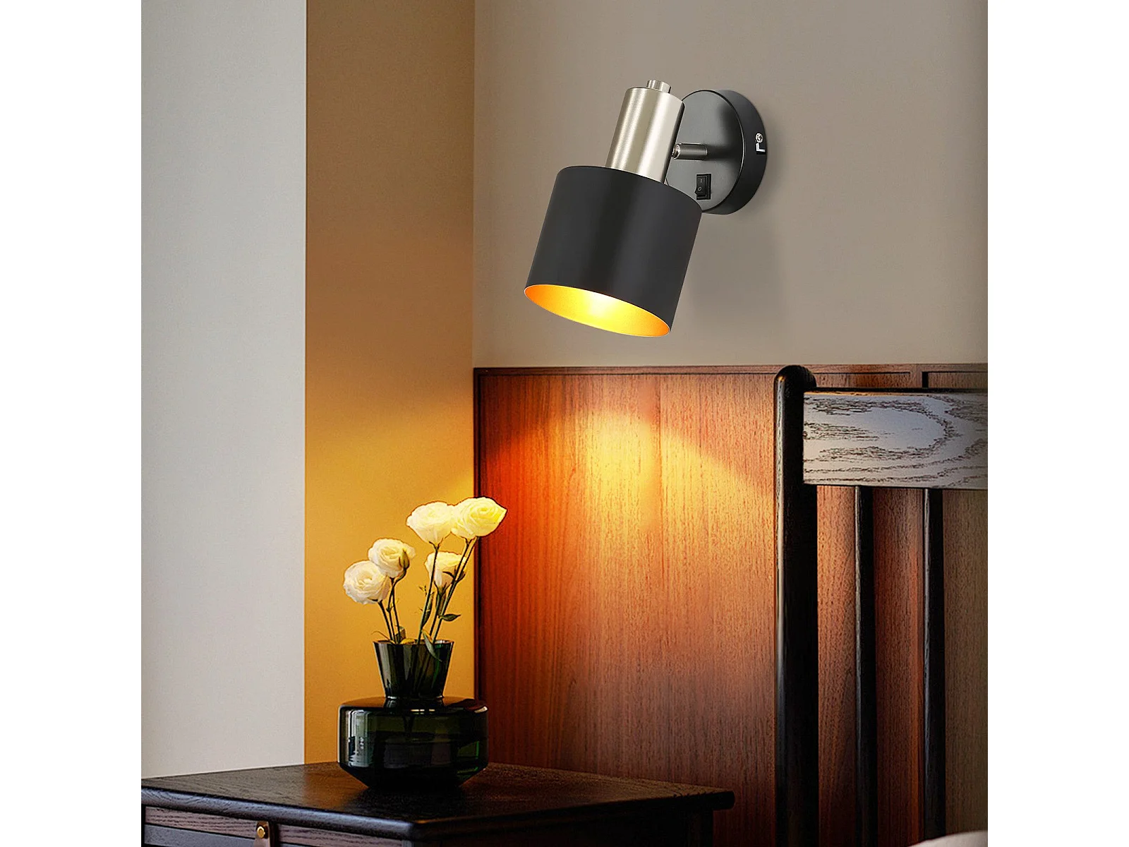 NETTLIFE Applique murale d'intérieur noire - spot mural vintage pour chambre à coucher rétro GU10 sans ampoule