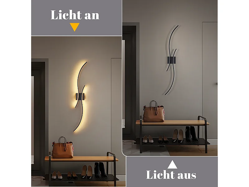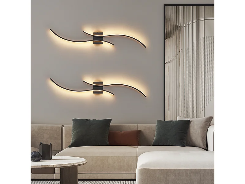 NETTLIFE Applique murale LED d'intérieur - 14W lampe de couloir 100CM lampe d'escalier noire design vague moderne 3000K