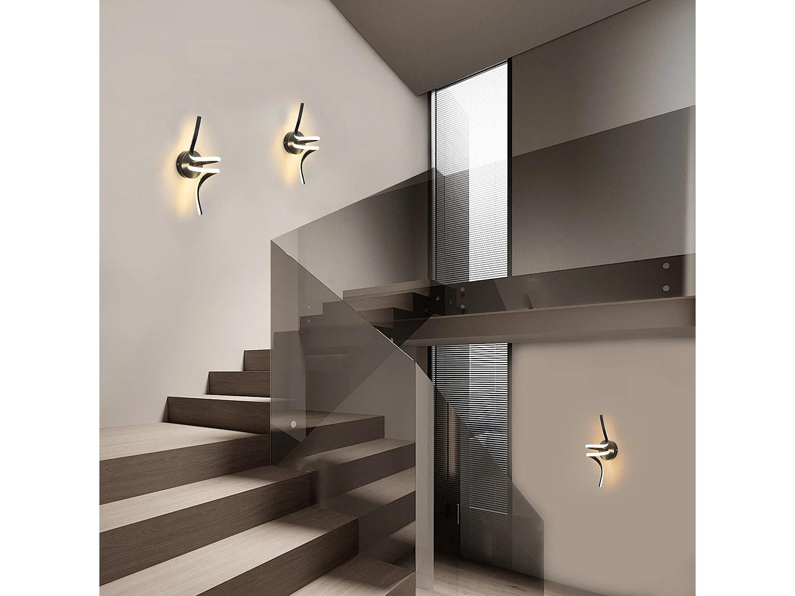 NETTLIFE Applique murale LED noire 7 W design incurvé blanc chaud 3000 K pour escalier d'intérieur