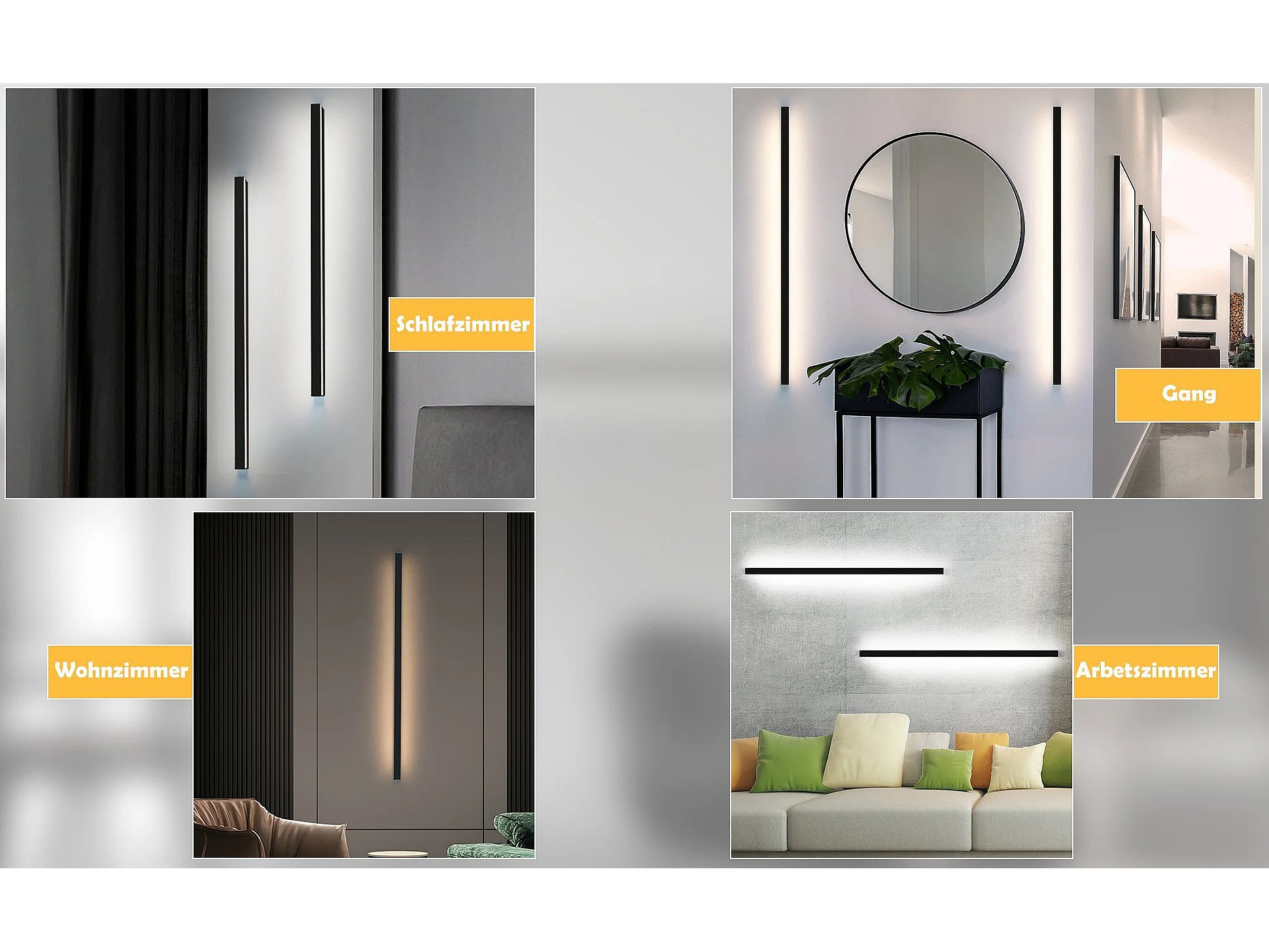 NETTLIFE Applique murale LED pour intérieur, noir, variable, 100 cm, moderne, 15 W, lampe de couloir, éclairage mural