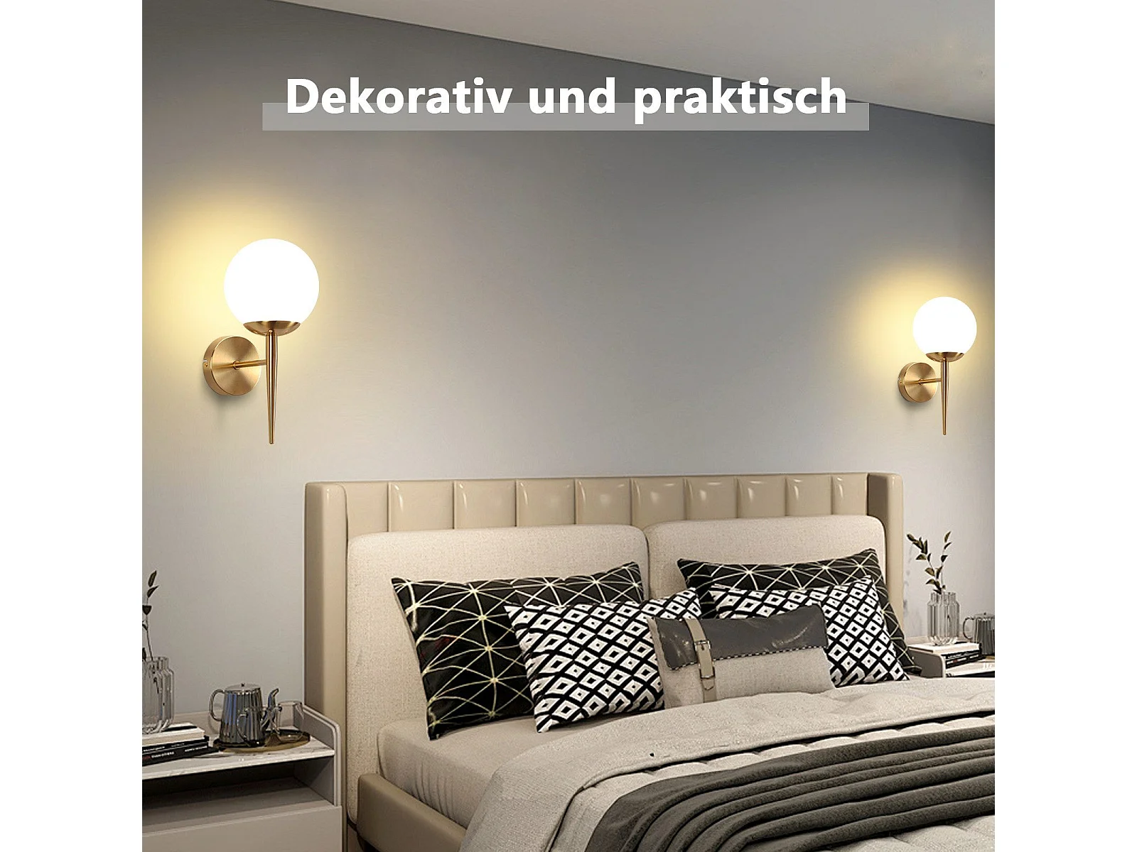 NETTLIFE Applique murale vintage boule de verre dorée E27 lampe murale d'intérieur chambre escalier