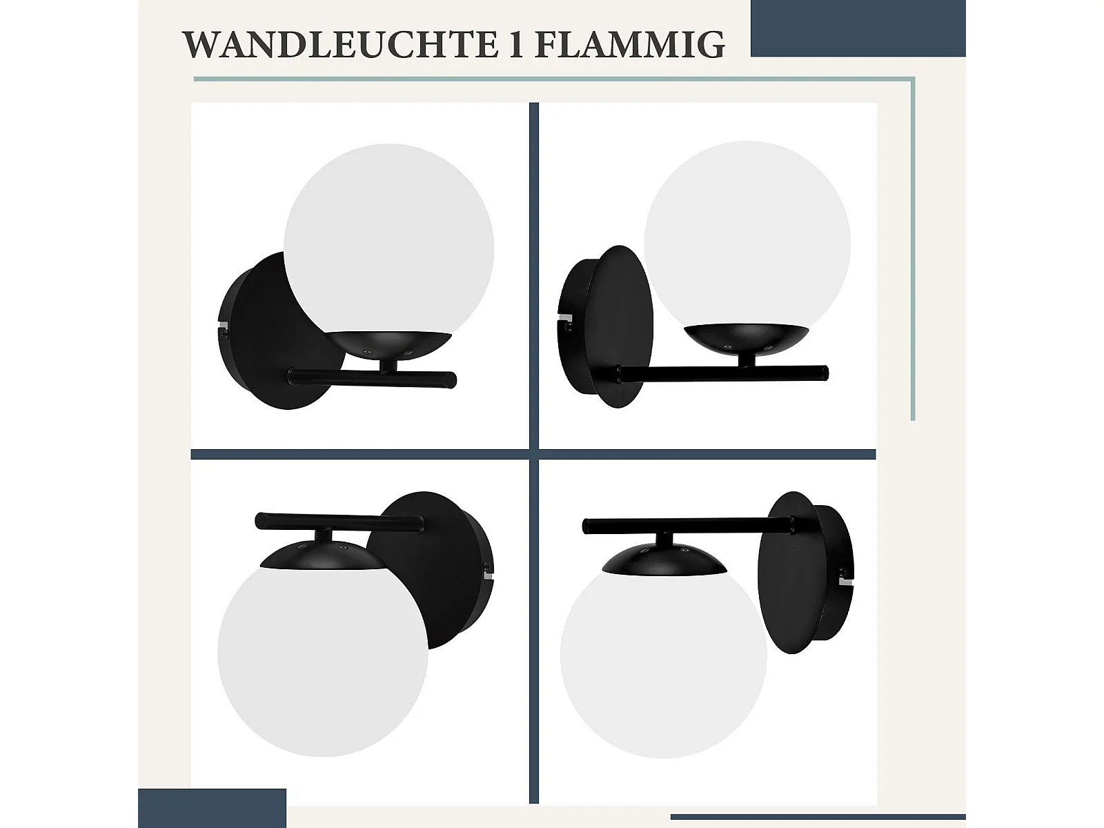 NETTLIFE Applique Noir Intérieure - E27 Métal Design Moderne en verre Lampe de Lit Applique Salle de Bain Vintage Lampe de Couloir